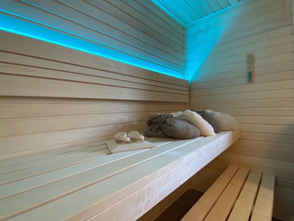 Als weiteren Luxus erwartet Sie in den Badezimmern neben dem stilvollen Interieur eine ebenerdige geräumige Dusche. Als Besonderheit wurde in einem der Badezimmer eine Sauna integriert.