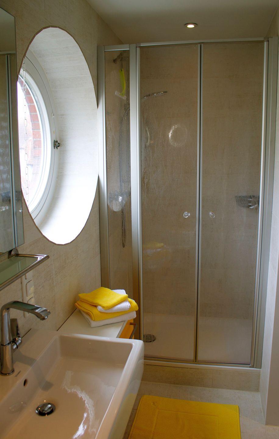 Viele kleine Akzente verleihen auch Ihrem zweiten Schlafbereich das richtige Ambiente. Es bietet ein Etagenbett mit Leselampen und einem Schreibtisch, um die Gedanken aufs Papier zu bringen. Von hier aus gelangen Sie in das moderne Badezimmer mit fast ebenerdiger Dusche und allem was Sie benötigen.