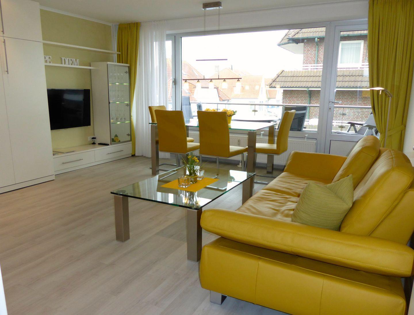 Treten Sie ein und genießen Sie Farben und geschmackvolle Dekoration auf rund 40 m² mit Balkon! Ihre traumhafte und liebevoll eingerichtete Ferienwohnung liegt im 2. Obergeschoss auf der Westseite des Hauses Poseidon. Nur wenige Schritte vom Haus entfernt, befindet sich die Nordsee mit ihren langen, unendlichen Sandstränden.