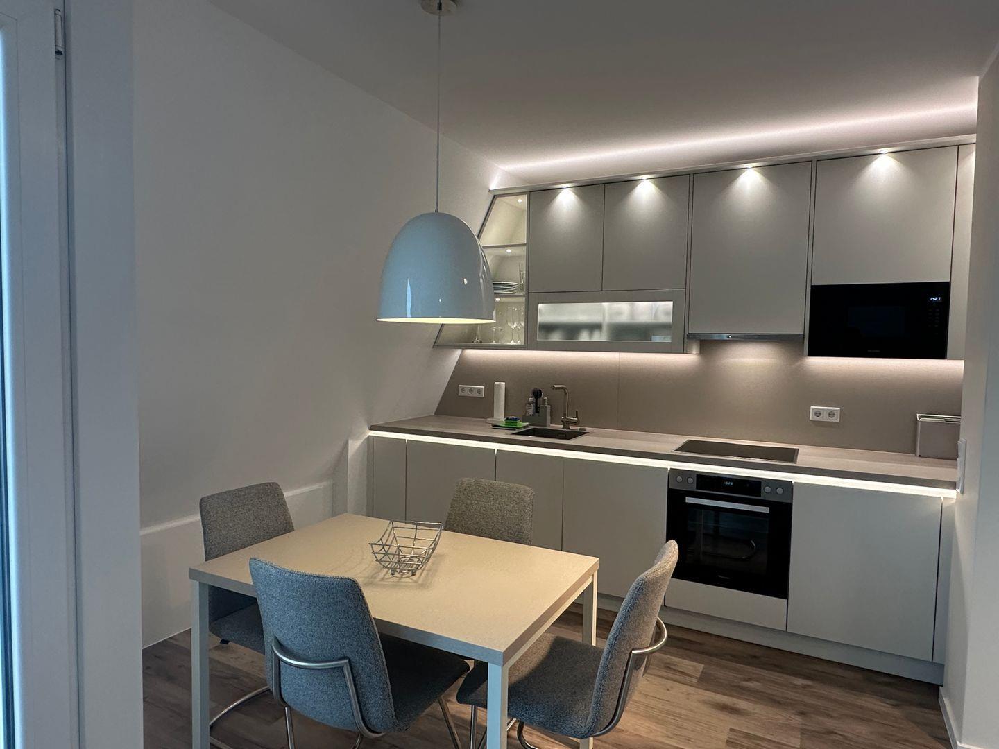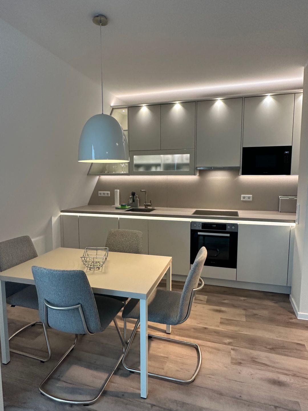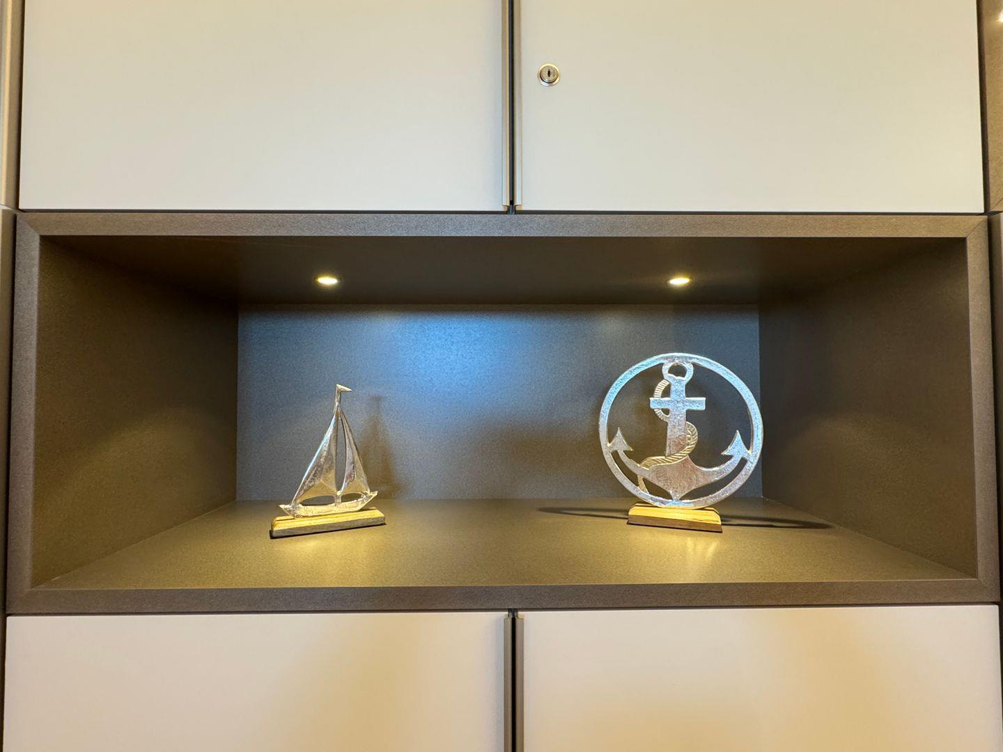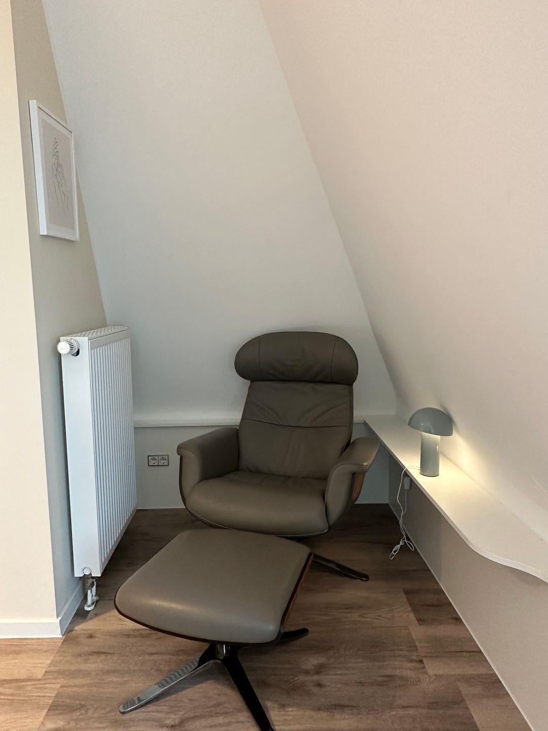 Die Unterkunft verfügt über zwei komfortable Schlafzimmer, die mit hochwertigem Vinylboden ausgestattet sind und jeden Abend einen erholsamen Schlaf garantieren. Das moderne Badezimmer ist mit einer bodengleichen Dusche ausgestattet und bietet Ihnen eine Wohlfühloase, in der Sie nach einem Tag am Strand entspannen können. Die offene und helle Küche, die zum Wohnzimmer hin ausgerichtet ist, lädt zu geselligen Kochabenden ein. Sie ist komplett ausgestattet mit einem Induktionsherd, einem Backofen, einer Spülmaschine sowie einer Kühleinheit mit Gefrierfach – alles, was Sie brauchen, um Ihre Lieblingsgerichte zuzubereiten. Genießen Sie diese Momente am großen Esstisch mit Blick auf das Meer.