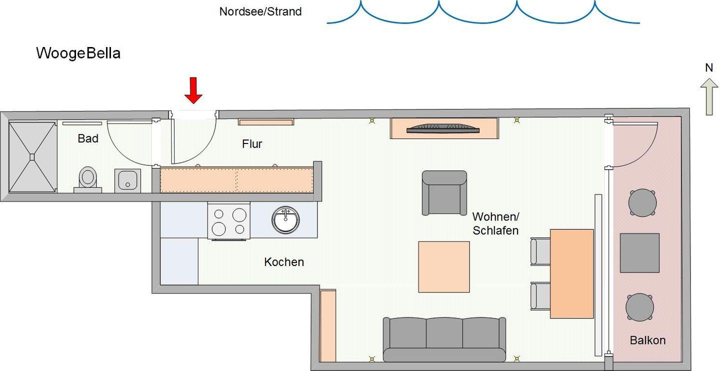 Nichtraucherwohnung sind Haustiere nicht erlaubt. Als Ausweichwohnung kann die nahezu baugleiche Wohnung WoogePerle (ebenfalls im 3. Stock) genutzt werden.