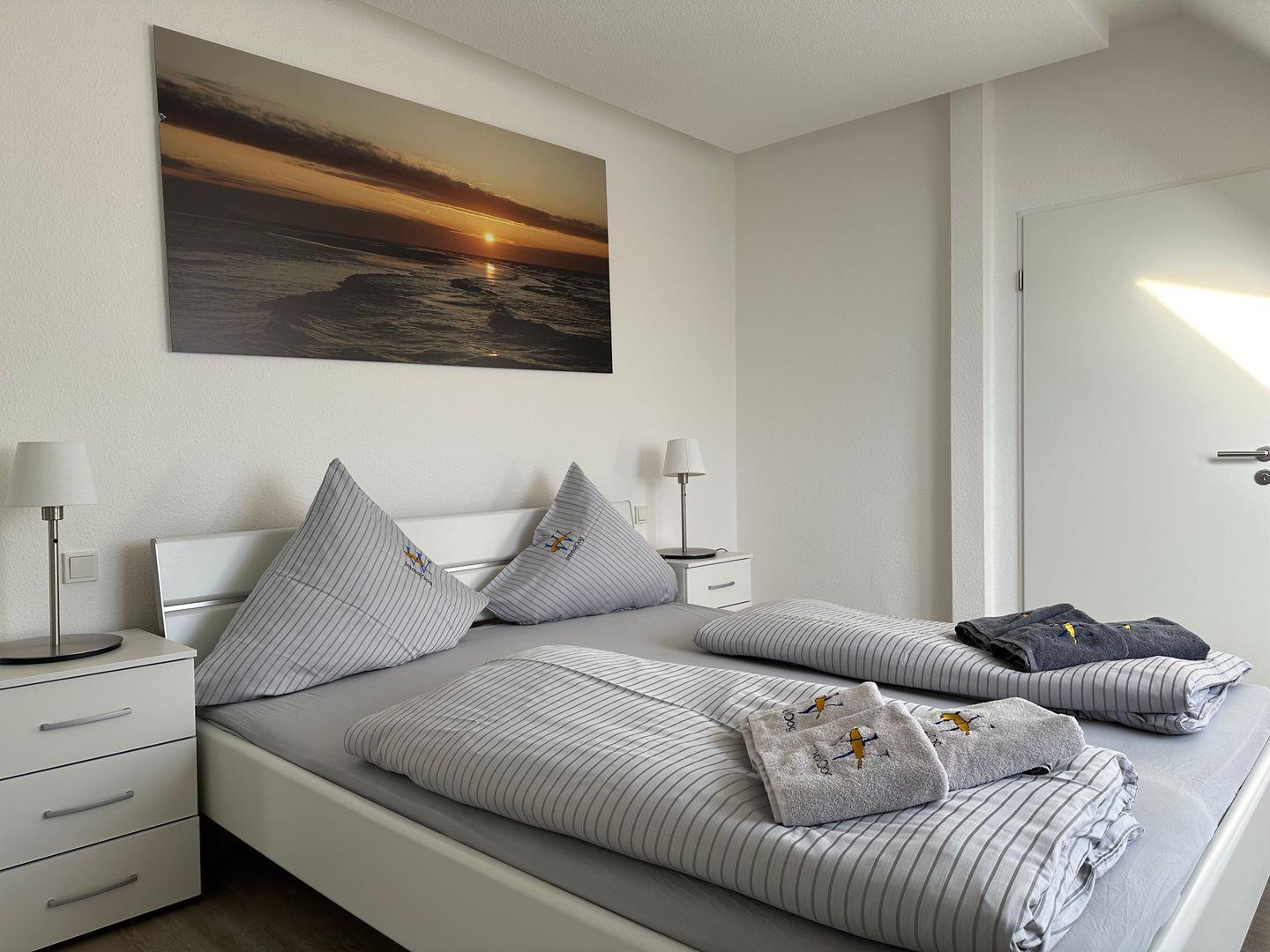 blicken. Mit zwei Schlafzimmern, jeweils mit einem Doppelbett und zwei