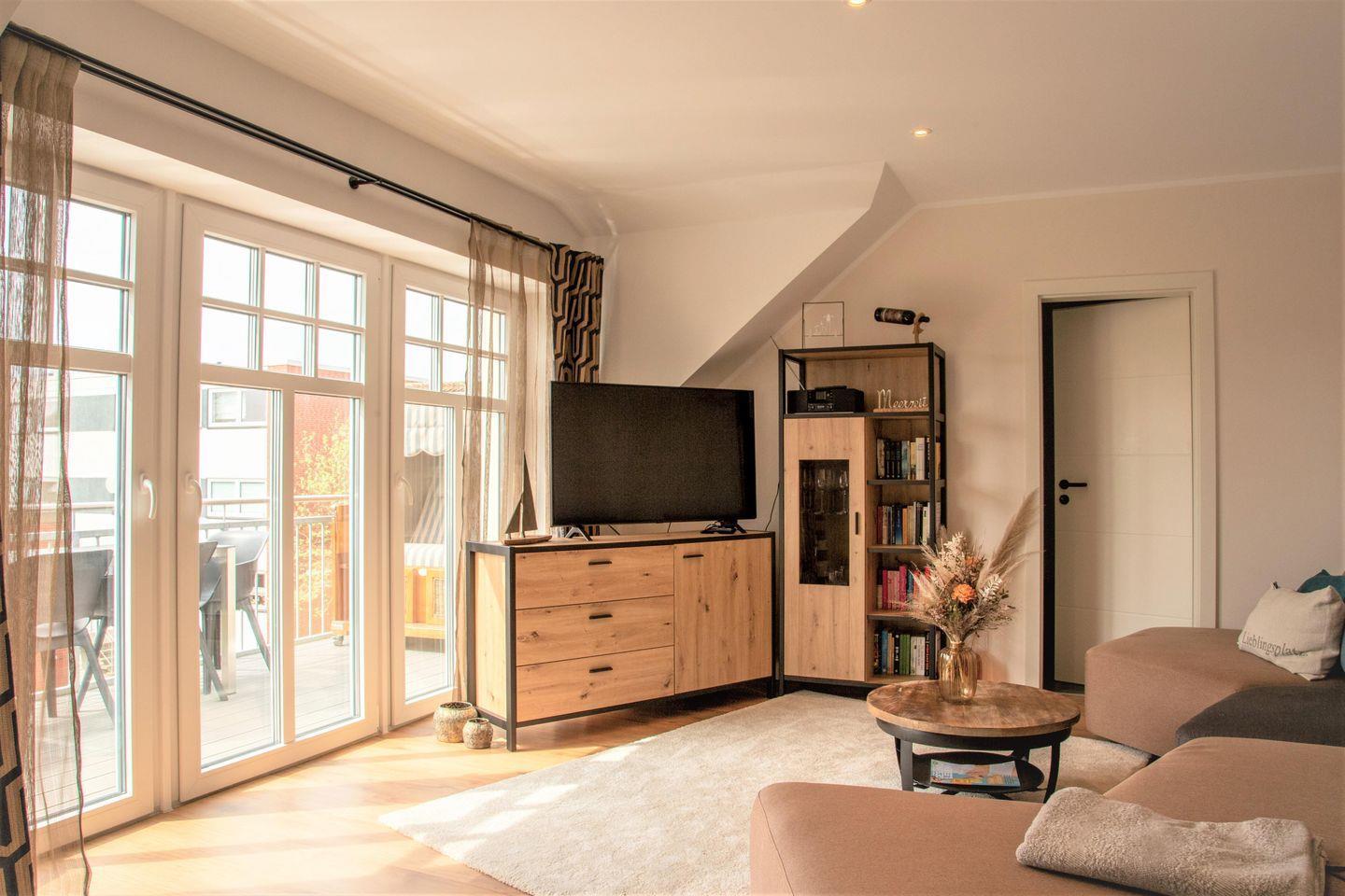 Unsere gemütlich und liebevoll eingerichtete ca. 70 qm große Ferienwohnung befindet sich im Dachgeschoss des Hauses mit Blick auf den „Alten Leuchtturm“ und den Bahnhof in Richtung mit toller Südausrichtung.