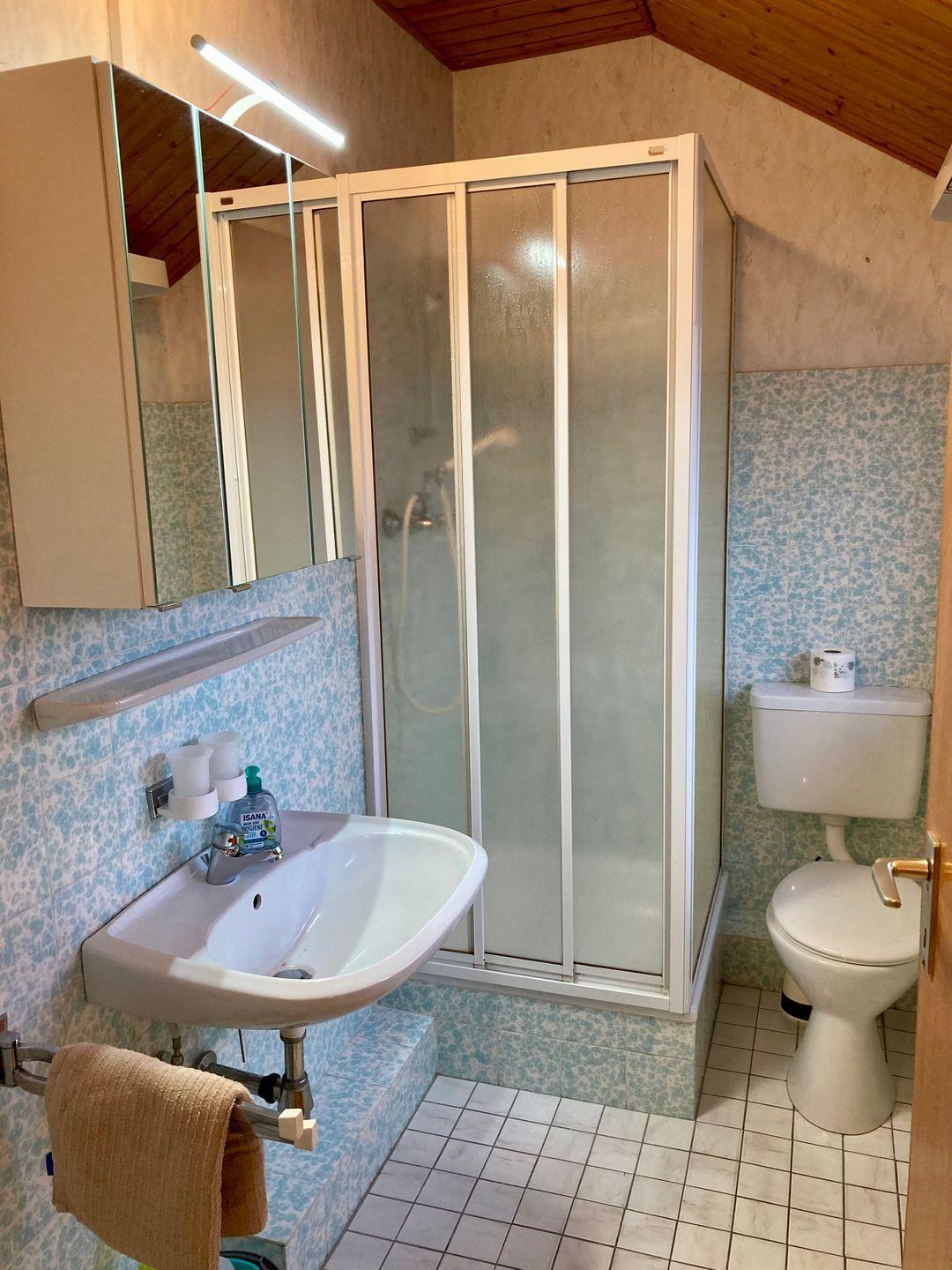 Sie besteht aus einem Schlafzimmer und 1 Wohnraum mit Küchenzeile, Sat-TV, Radio, sowie Bad mit Dusche und WC und einer kl Küchenzeile