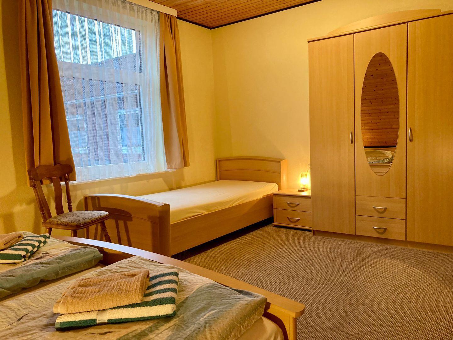 Sie besteht aus einem Schlafzimmer und 1 Wohnraum mit Küchenzeile, Sat-TV, Radio, sowie Bad mit Dusche und WC.