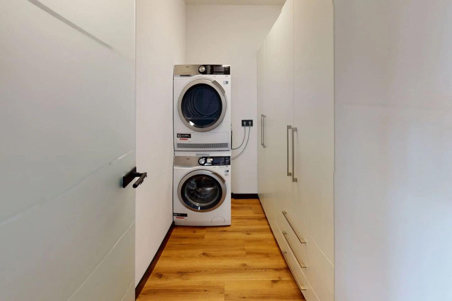 Die offene Küche lädt zu kulinarischen Erlebnissen ein und ist vollständig ausgestattet mit hochwertigen Küchenutensilien, einem modernen Ceranherd, einem Backofen, einer Spülmaschine und einem Kühlschrank mit Gefrierfach. Ob Sie ein einfaches Frühstück zubereiten oder ein festliches Abendessen zaubern möchten – alles, was Sie benötigen, finden Sie hier. Für zusätzlichen Komfort sind eine Waschmaschine und ein Trockner ebenfalls vorhanden, sodass Sie sich um Ihre Wäsche keine Sorgen machen müssen.
