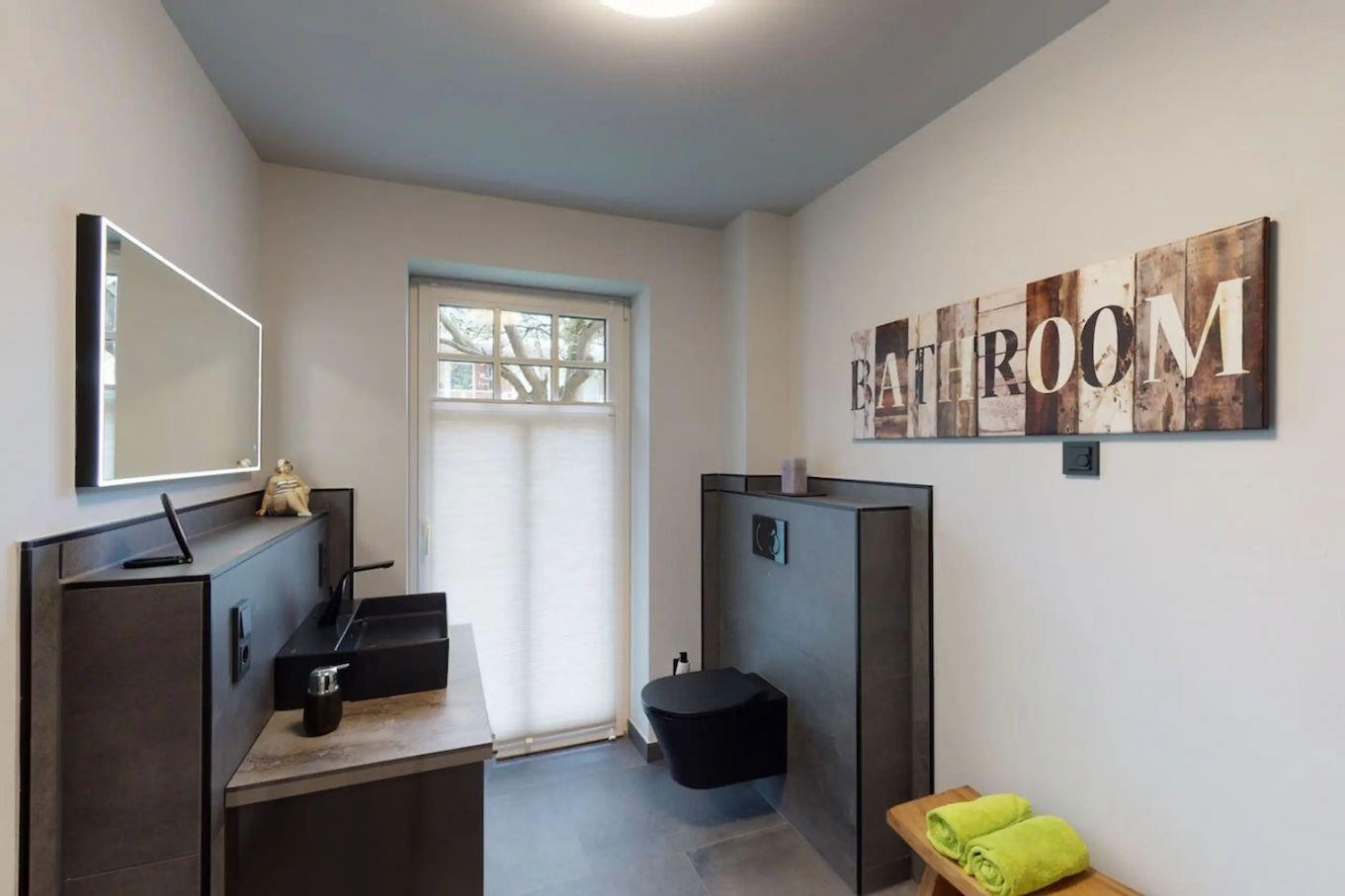 Das Badezimmer besticht durch eine bodengleiche Dusche und die umfangreiche Ausstattung mit Waschbecken, WC und einem Haartrockner. Hier können Sie nach einem langen Tag an der frischen Luft entspannen und sich frisch machen. Die gesamte Unterkunft ist zudem mit Fußbodenheizung und zentraler Heizungsanlage ausgestattet, was für eine angenehme Wohlfühlatmosphäre sorgt – auch an kühleren Tagen.