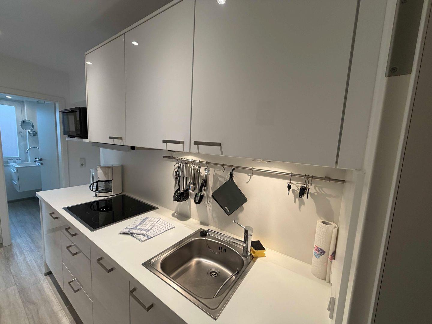 Die Küche ist umfassend ausgestattet und eignet sich besonders für längere Aufenthalte: Cerankochfeld, Backofen, Mikrowelle, Kühlschrank mit Gefrierfach, Spülmaschine, Eierkocher, Wasserkocher, Toaster, Mixer und eine Vielzahl an Küchenutensilien sowie Geschirr und Besteck lassen keine Wünsche offen.
