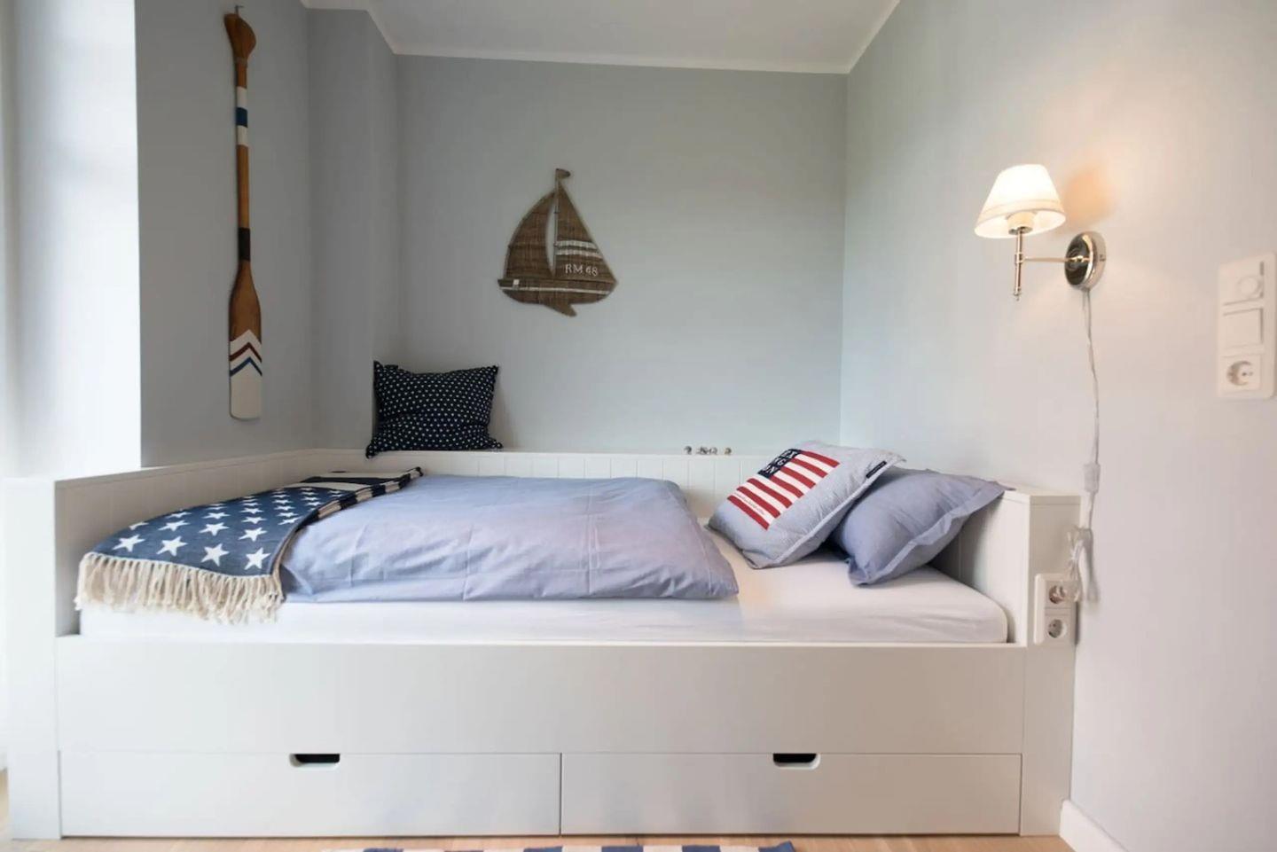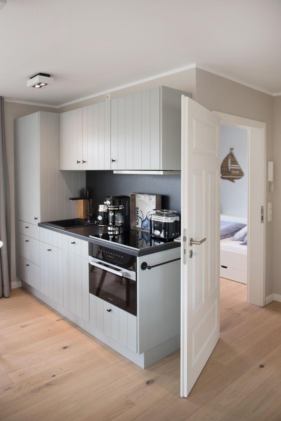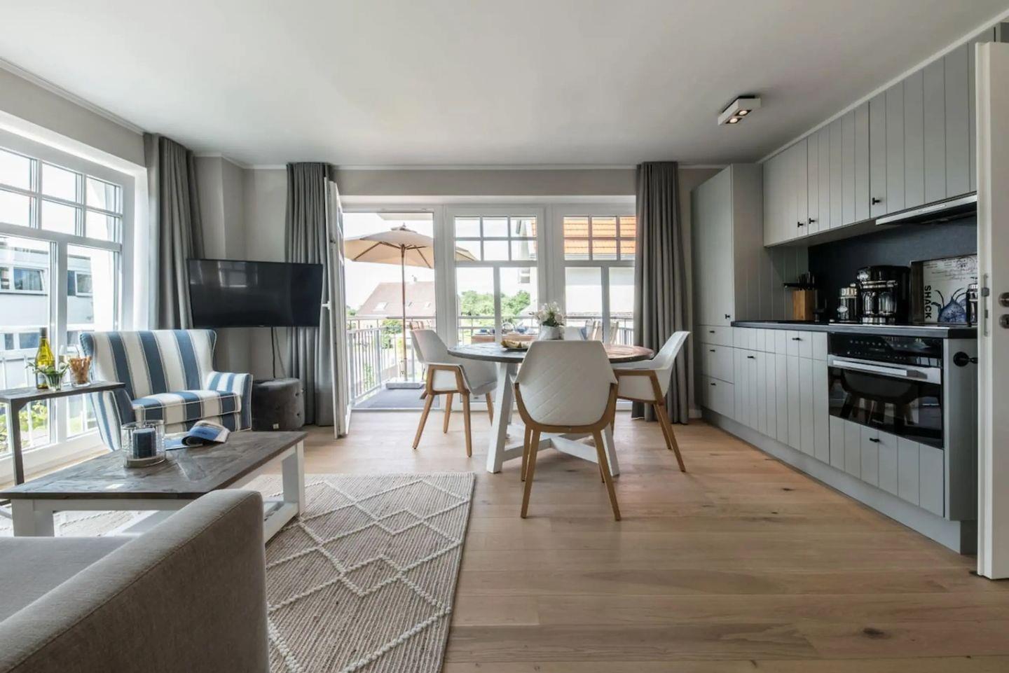Mit insgesamt drei Zimmern, darunter zwei separate Schlafzimmer und ein einladendes Wohnzimmer, ist ausreichend Platz für bis zu drei Schlafmöglichkeiten geboten. Das offene Raumkonzept verbindet die moderne Küche und den gemütlichen Wohnbereich, wodurch eine freundliche und helle Atmosphäre entsteht. Die Küche ist mit hochwertigen Geräten wie Ceranherd, Backofen, Mikrowelle, Geschirrspüler, Kühlschrank mit Gefrierfach, Wasserkocher, Toaster, Mixer und Kaffeemaschine vollständig ausgestattet. Sämtliche Küchenutensilien sowie Geschirr, Besteck und Geschirrhandtücher sind selbstverständlich vorhanden. Sie finden ebenso einen Essbereich mit Esstisch und komfortablen Sitzgelegenheiten.