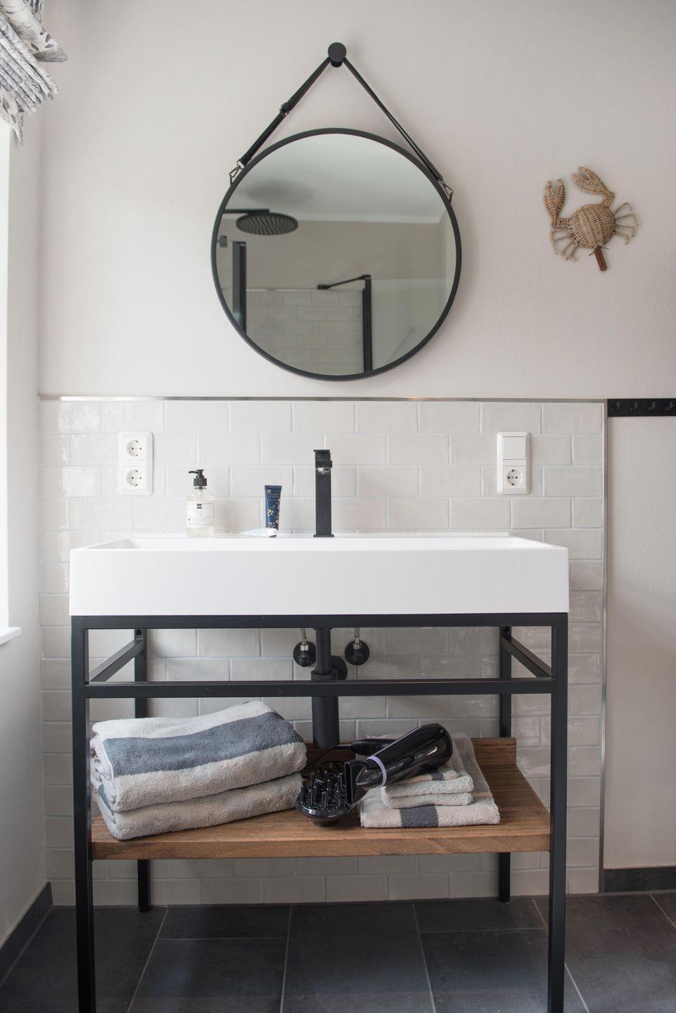 Das moderne Badezimmer ist mit einer bodengleichen Dusche sowie einem Fenster ausgestattet. Ein Haartrockner steht ebenfalls zu Ihrer Verfügung. Für den längeren Aufenthalt bieten Waschmaschine und Trockner zur Eigennutzung sowie ein Wäscheständer hohen Komfort. Stauraum schaffen Garderobe, Schuhschrank, Kommode und weitere Möbelstücke.
