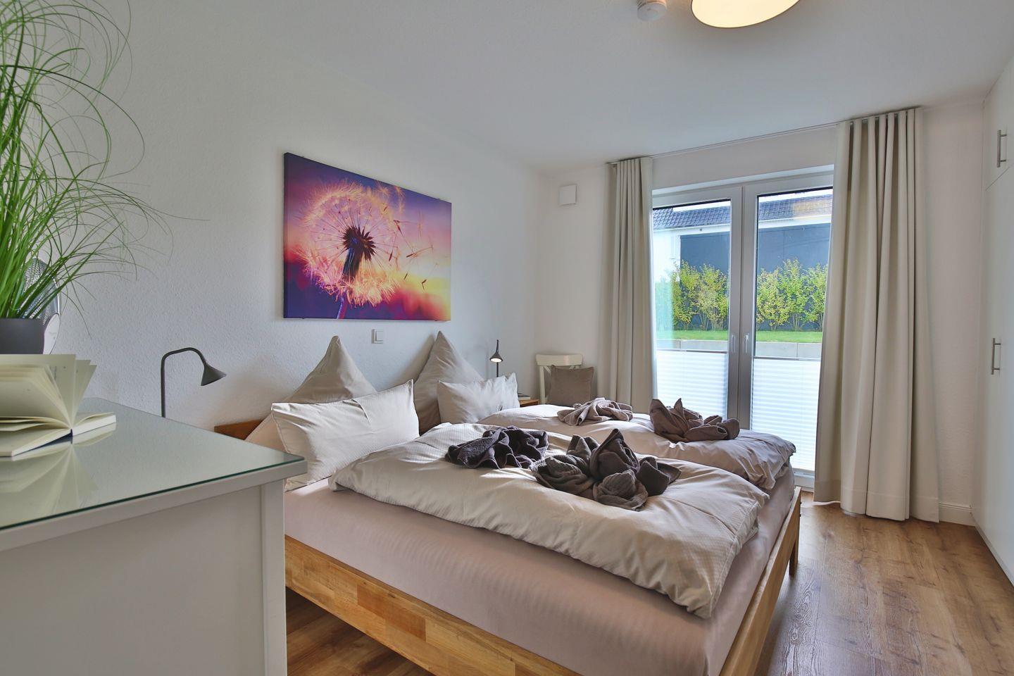 Die Unterkunft ist für bis zu vier Personen ausgelegt und bietet zwei separate Schlafzimmer, die sowohl Familien mit Kindern als auch befreundeten Paaren Privatsphäre und Rückzugsmöglichkeiten bieten. Kinder sind selbstverständlich willkommen. Der offen gestaltete Wohn- und Essbereich ist freundlich eingerichtet und verfügt über einen modernen Esstisch für gemeinsame Mahlzeiten.