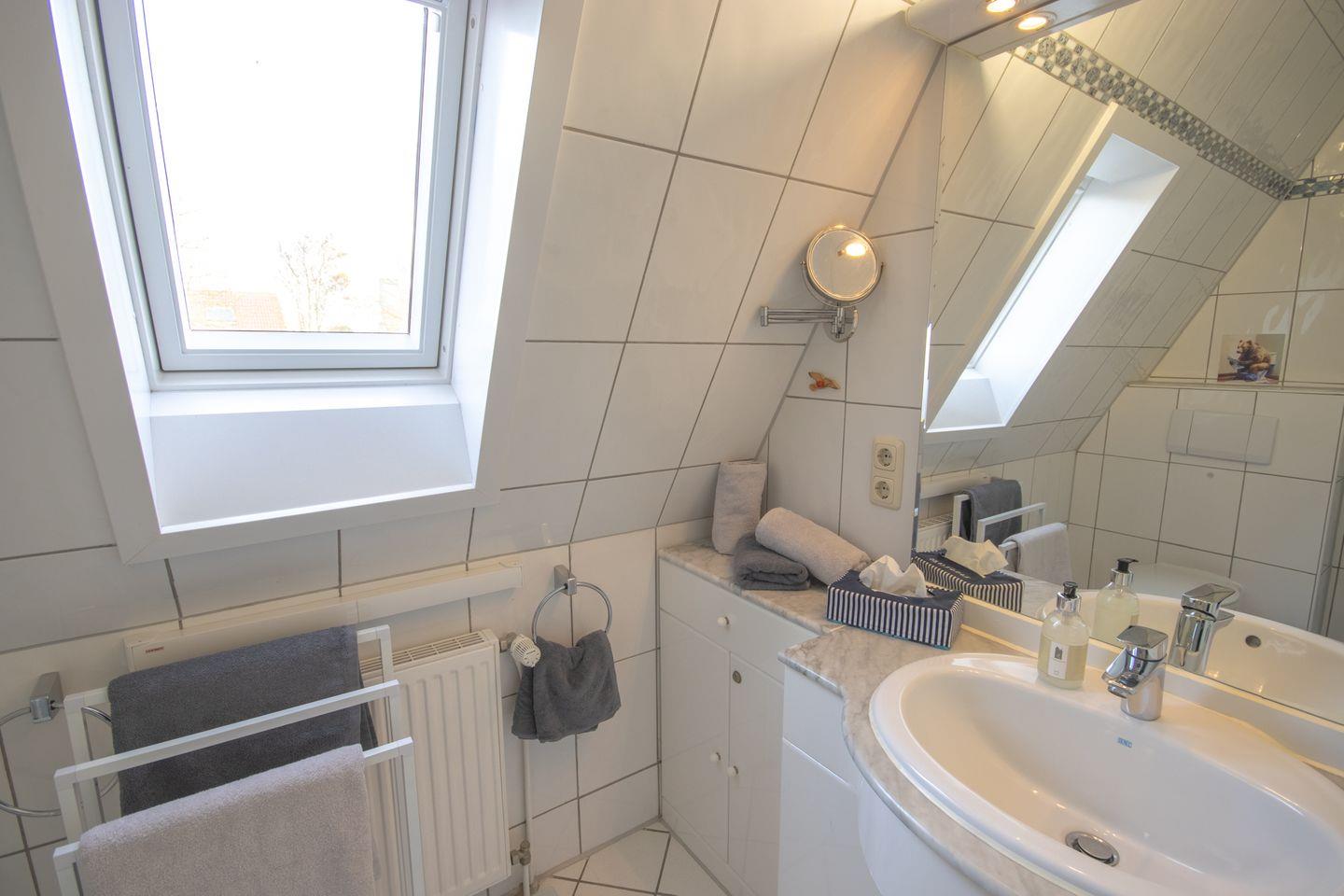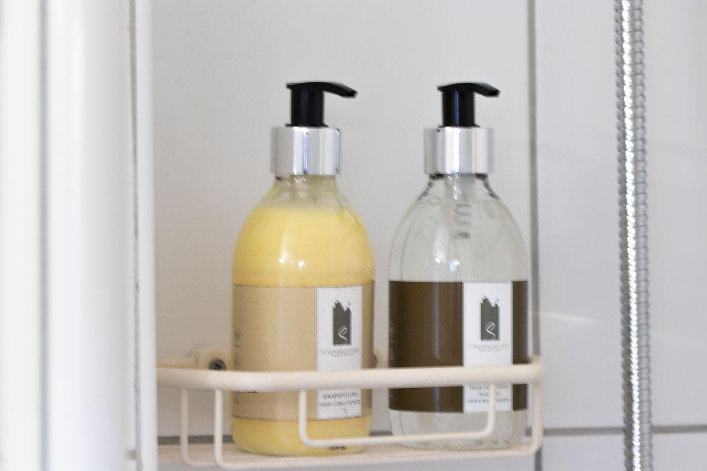 Föhn, Seife, Shampoo, Conditioner und Toilettenpapier – alles schon für Sie da, selbstverständlich 2 kleine und 1 großes Handtuch für jeden