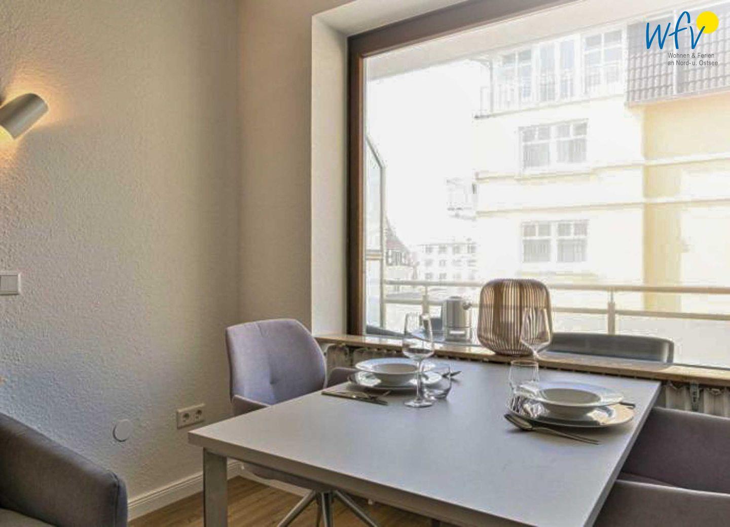 In dem charmanten Ein-Raum-Appartement empfängt Sie eine helle und freundliche Einrichtung, die zum Wohlfühlen einlädt. Die Wohnung ist lichtdurchflutet, sodass Sie besonders beim morgendlichen Frühstück die ersten Sonnenstrahlen genießen können. Oder Sie starten auf dem kleinen möblierten Westbalkon in den Tag - bei Sonne und Meeresrauschen. Von hier aus haben Sie einen eingeschränkten Meerblick auf die Nordsee!