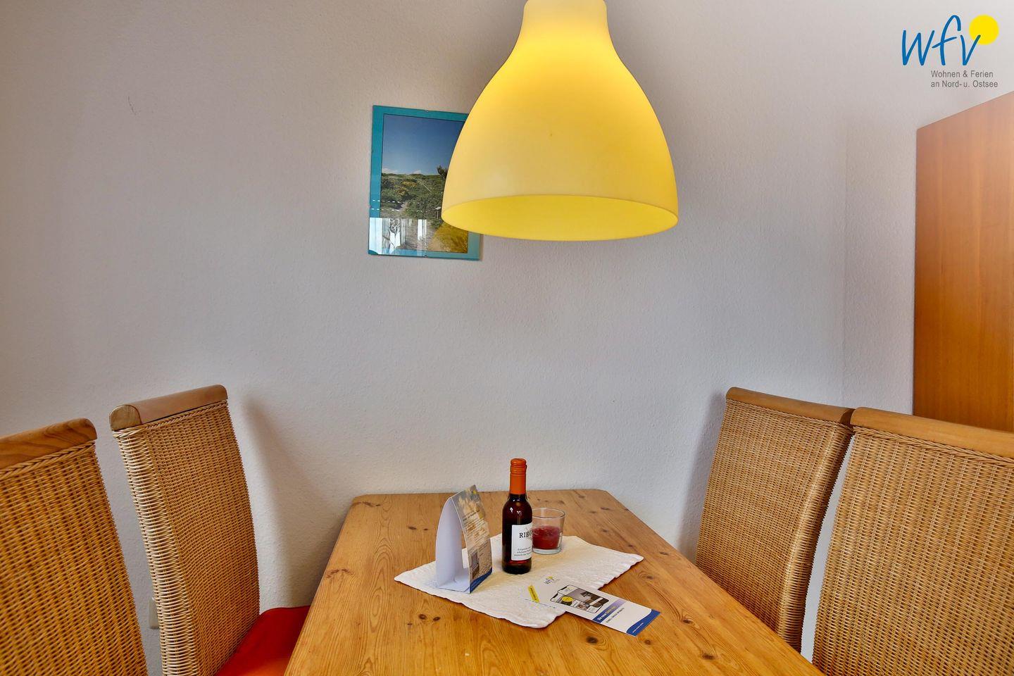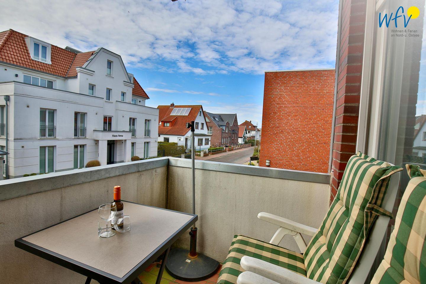 Klare Nordseeluft genießen Sie auf dem möblierten Balkon, der zum Ausspannen, Lesen und Träumen einlädt. Mit schönem Blick in die Umgebung können Sie wunderbar den Urlaubstag bei einem Glas Wein ausklingen lassen. Die Balkonüberdachung ermöglicht auch an leicht regnerischen Tagen einen Aufenthalt im Freien.
