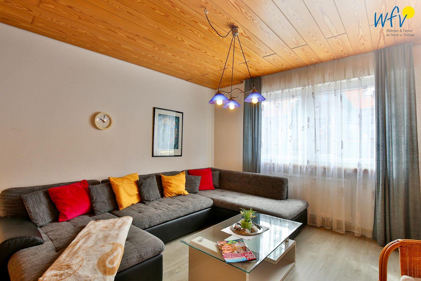 Weitere Gelegenheit zur Erholung bietet der helle Wohnraum, der mit einer gemütlichen Couchlandschaft mit TV sowie mit einem Essplatz ausgestattet ist.