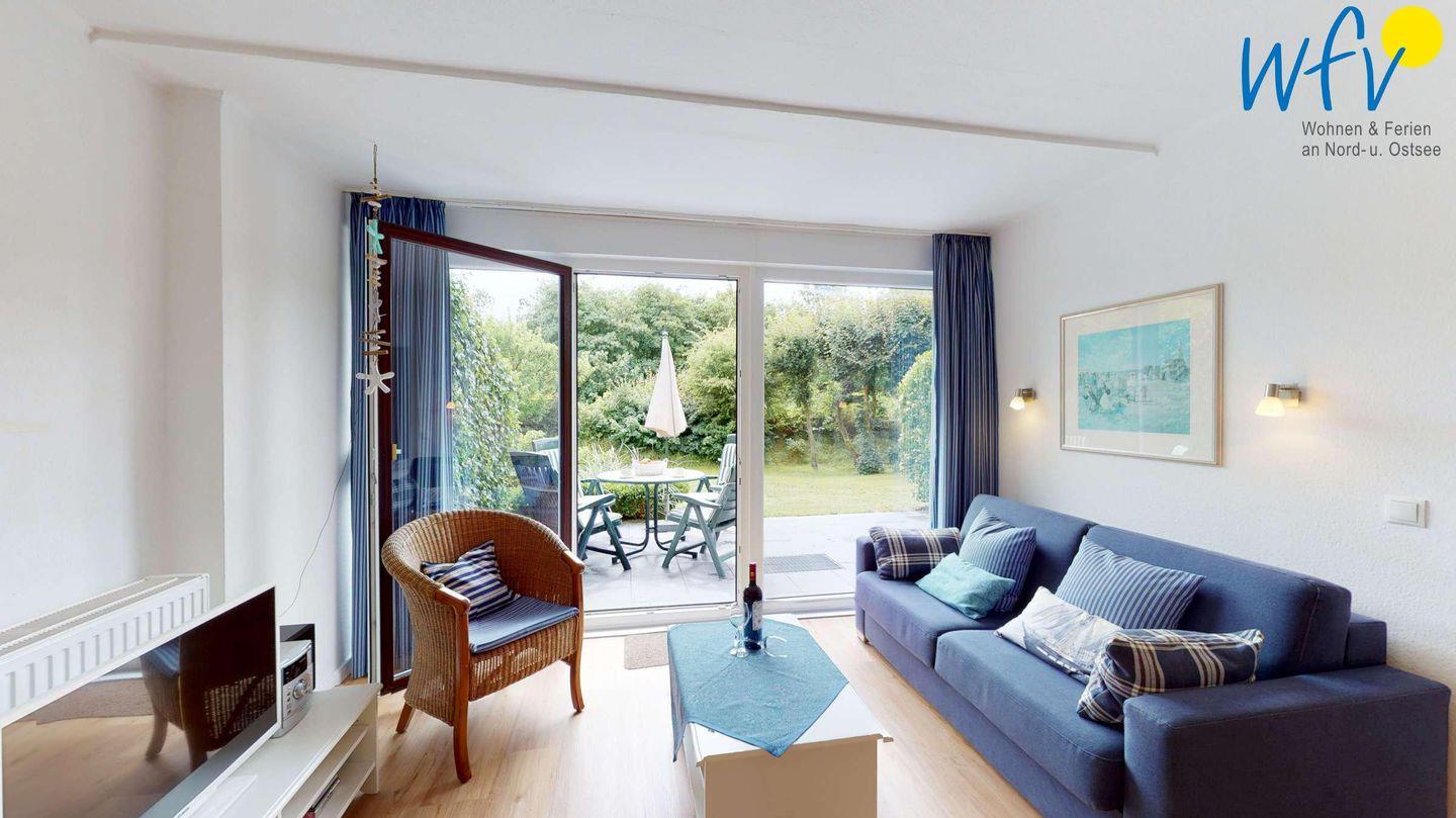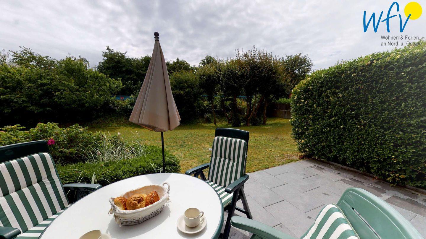 Zum ausgiebigen Entspannen lädt das gemütliche, lichtdurchflutete Wohnzimmer mit Panoramafenster, Essbereich, Couchecke und TV ein. Hier können Sie wunderbar bei offener Terrassentür mit Blick in den Garten zusammensitzen. Oder Sie relaxen im schönen Außenbereich der Ferienwohnung: Auf der windgeschützten Süd-Terrasse mit angrenzendem Garten werden Sie sich wunderbar erholen, auch im Herbst und Winter. Sich im bequemen Gartenstuhl die Sonne ins Gesicht scheinen zu lassen, ein spannendes Buch zu lesen oder abends bis zum Sonnenuntergang beisammenzusitzen - das sind unvergessliche Urlaubsmomente auf Wangerooge.