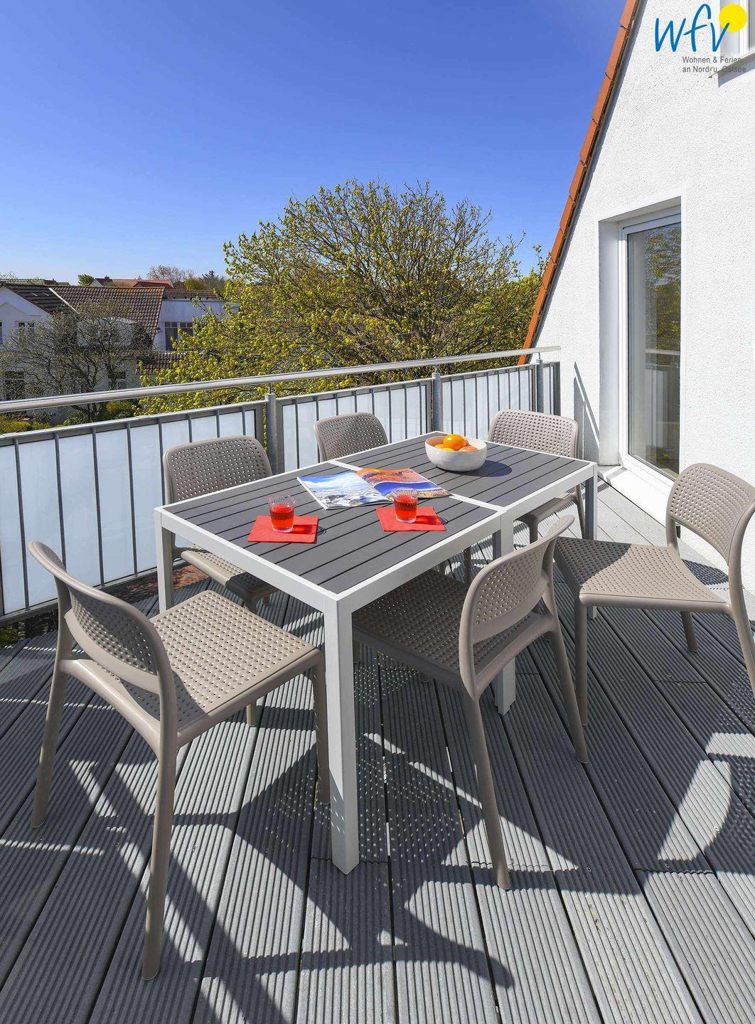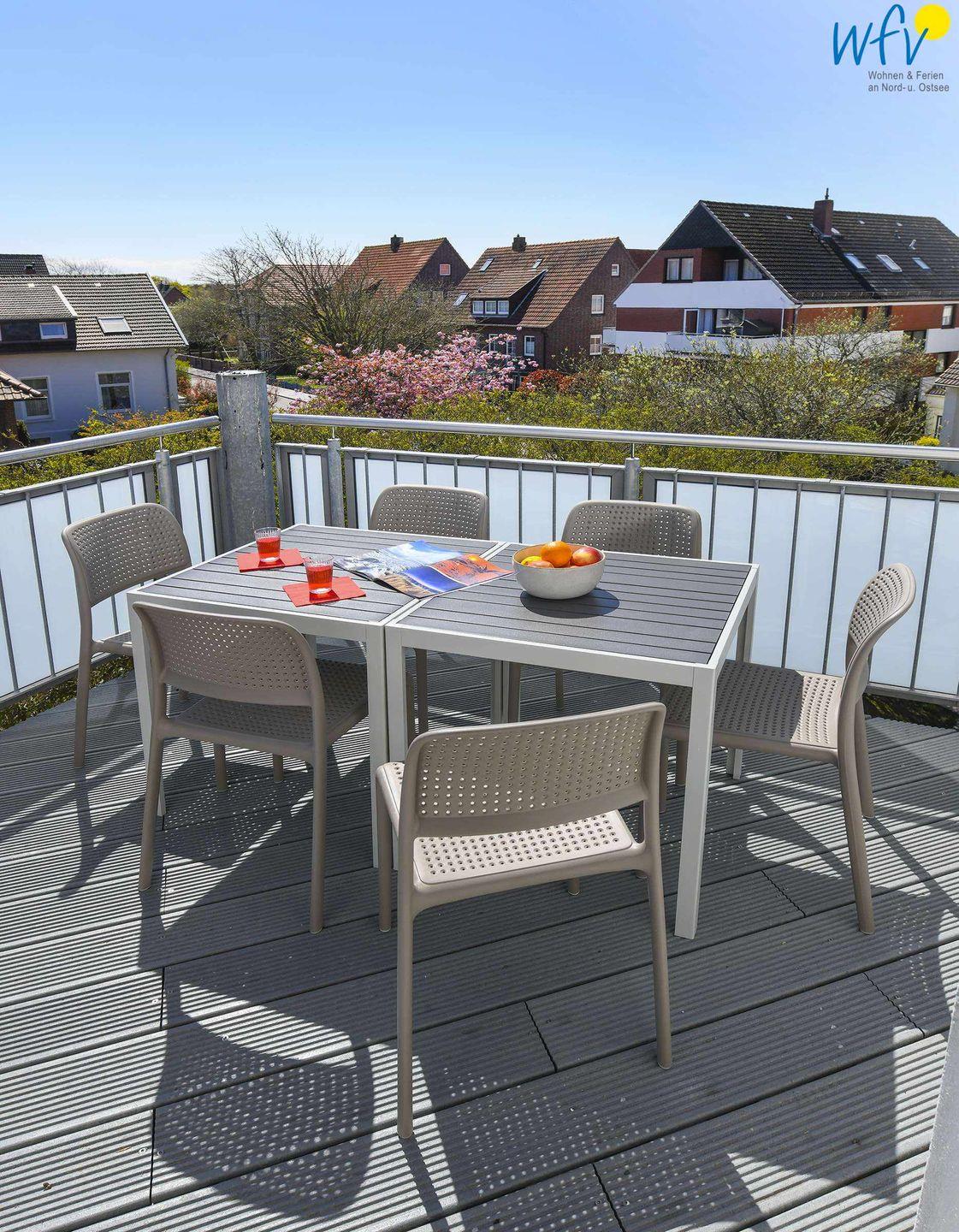 Vom Esstisch haben Sie einen herrlichen Blick auf den alten Leuchtturm und einen direkten Zugang auf den sonnigen Südbalkon.