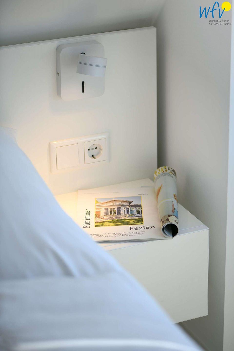 Ein kleiner praktischer Abstellraum bietet Platz für Ihre Koffer, Staubsauger und den Wäscheständer. Die Urlaubsgarderobe kann in den Ausziehfächern der Betten verstaut werden. Durch herrlich große Fenster und dem damit verbundenen Lichteinfall besitzt die Galerie eine besonders schöne Atmosphäre. Vom Doppelbett aus können Sie den Alten Leuchtturm sehen.