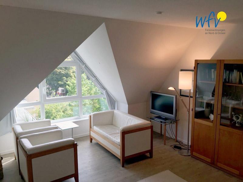 Die 86 m² große Wohnung erstreckt sich über zwei Etagen - 1. Obergeschoss und Dachgeschoss. Sie bietet vier Personen und einem Kleinkind ausreichend Platz für einen erholsamen Urlaub an der Nordsee.
