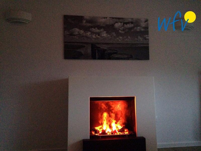 Das Dachgeschoss besitzt einen großzügigen Studiocharakter. Neben dem Schlafbereich ist der Raum mit einer gemütlichen Sitzgruppe, TV und Kamin eingerichtet. Von hier aus schauen Sie direkt auf den alten Leuchtturm im Osten; vom Schlafbereich aus nach Westen auf den neuen Leuchtturm in der Ferne.