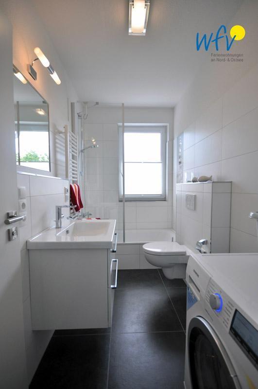 Im Badezimmer im 1. OG befindet sich eine Badewanne und ein Waschtrockner. Das zweite Bad ist mit einer bodentiefen Dusche ausgestattet.