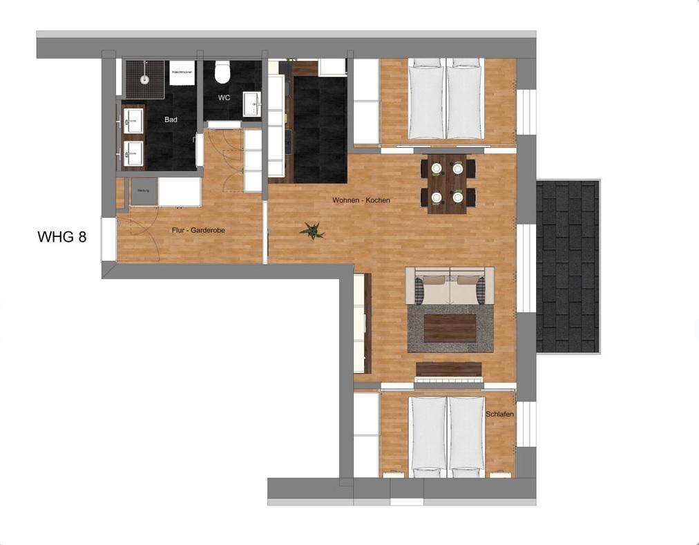 Die vollausgestattete und moderne Einbauküche ist in den Wohnraum integriert. Sie verfügt u.a. über einen Herd, einen Backofen, eine Spülmaschine, eine Kaffee-/Espressomaschine, einen Wasserkocher und einen Soda Stream sowie über ausreichend hochwertiges Geschirr. Der moderne Weber Elektrogrill rundet die tollen Möglichkeiten der Selbstverpflegung im Quartier Nummer 8 ab. Für gemeinsame Mahlzeiten ist ein großer Esstisch vorhanden.