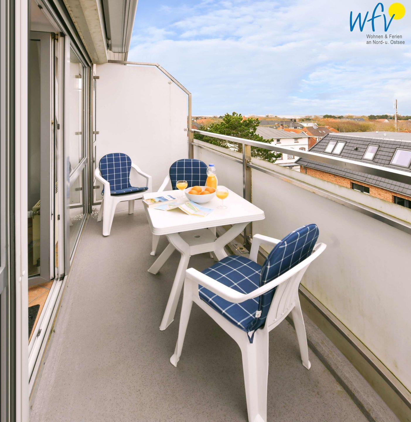 Wohltuende Nordseeluft buchen Sie in dieser Ferienwohnung auf Wangerooge inklusive! Der möblierte Balkon ist der ideale Ort zum Ausspannen. Von hier aus sehen Sie sogar schon die Nordsee (eingeschränkt)!