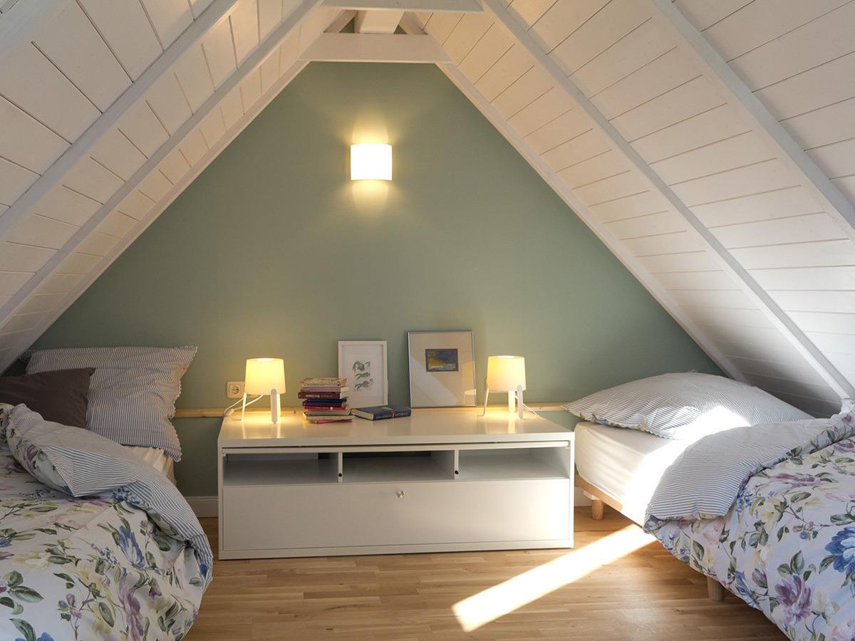 2 Schlafzimmer: 1 Doppelbett, 2 Einzelbetten 220 cm, 1 Babybett und Hochstuhl zustellbar