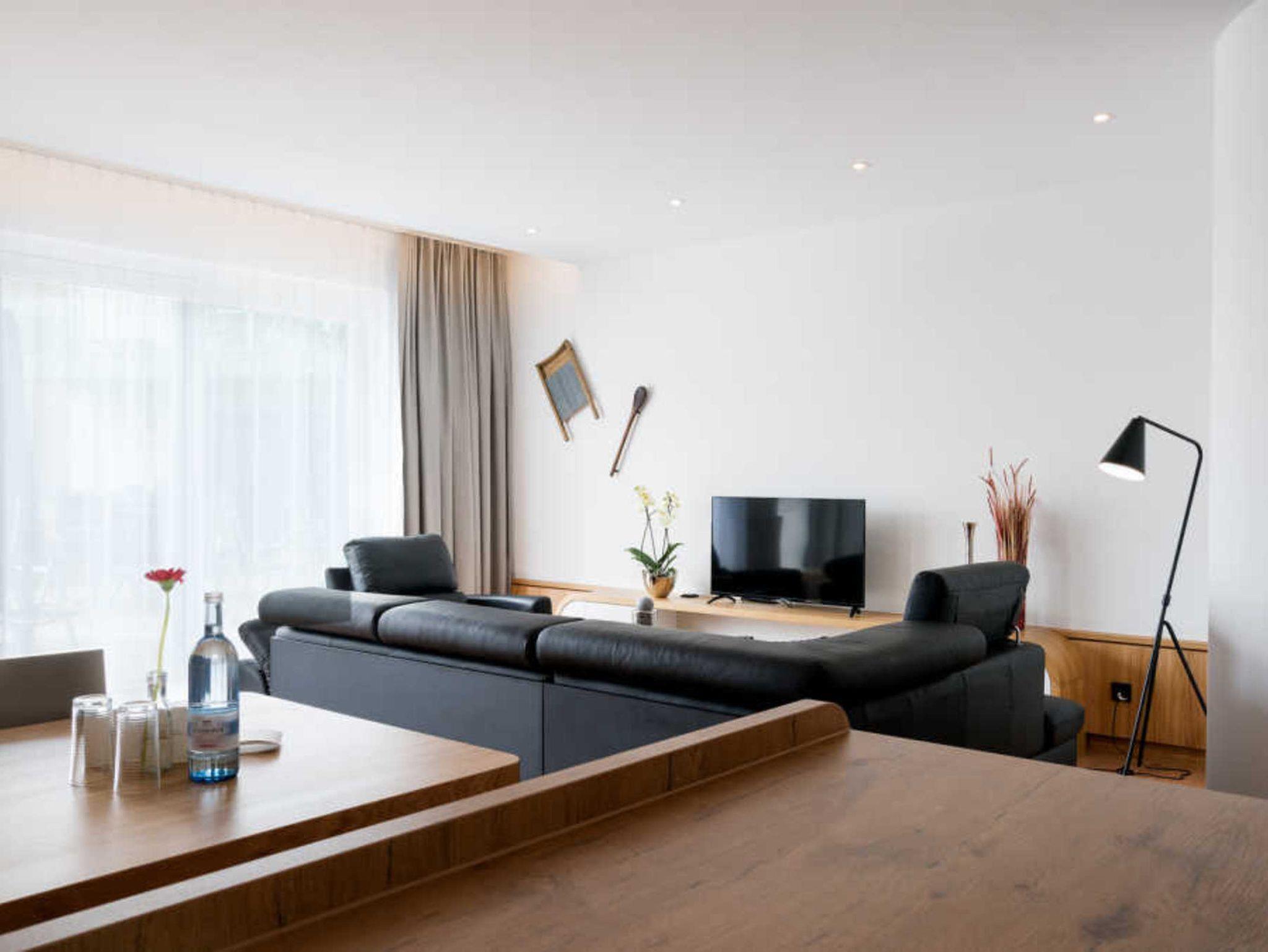 Diese Suite ist auf Anfrage mit Haustier buchbar. Die Suite Waschküche befindet sich im Erdgeschoss des Hauses und verfügt über zwei Schlafbereiche, ein Bad sowie einen kombinierten Wohn-/Essbereich mit offener Küche. Die große Terrasse: 22 qm läd zum Verweilen ein. Eine Aufbettung für die 5. Person erfolgt im Wohnbereich auf der Couch. Extras: