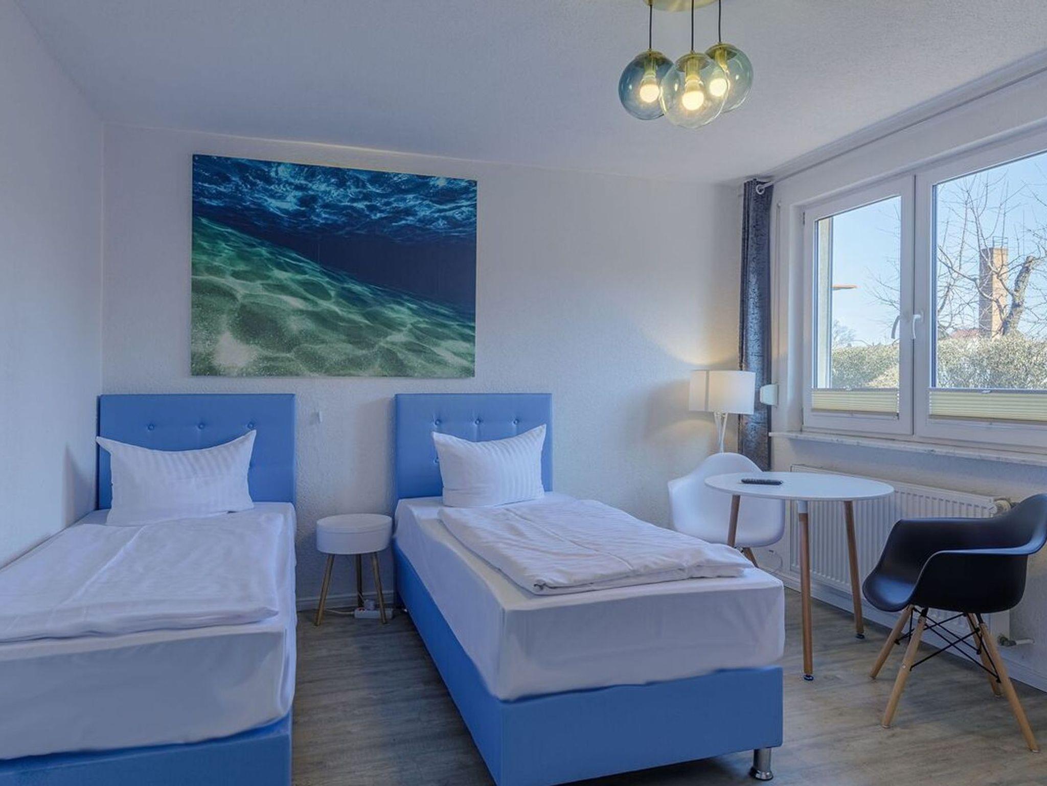 Das zentrale Gemälde des Zimmers zeigt eine Unterwassersandbank: Wasser, Licht, Ruhe. Wie ein Fisch im Wasser entspannen.