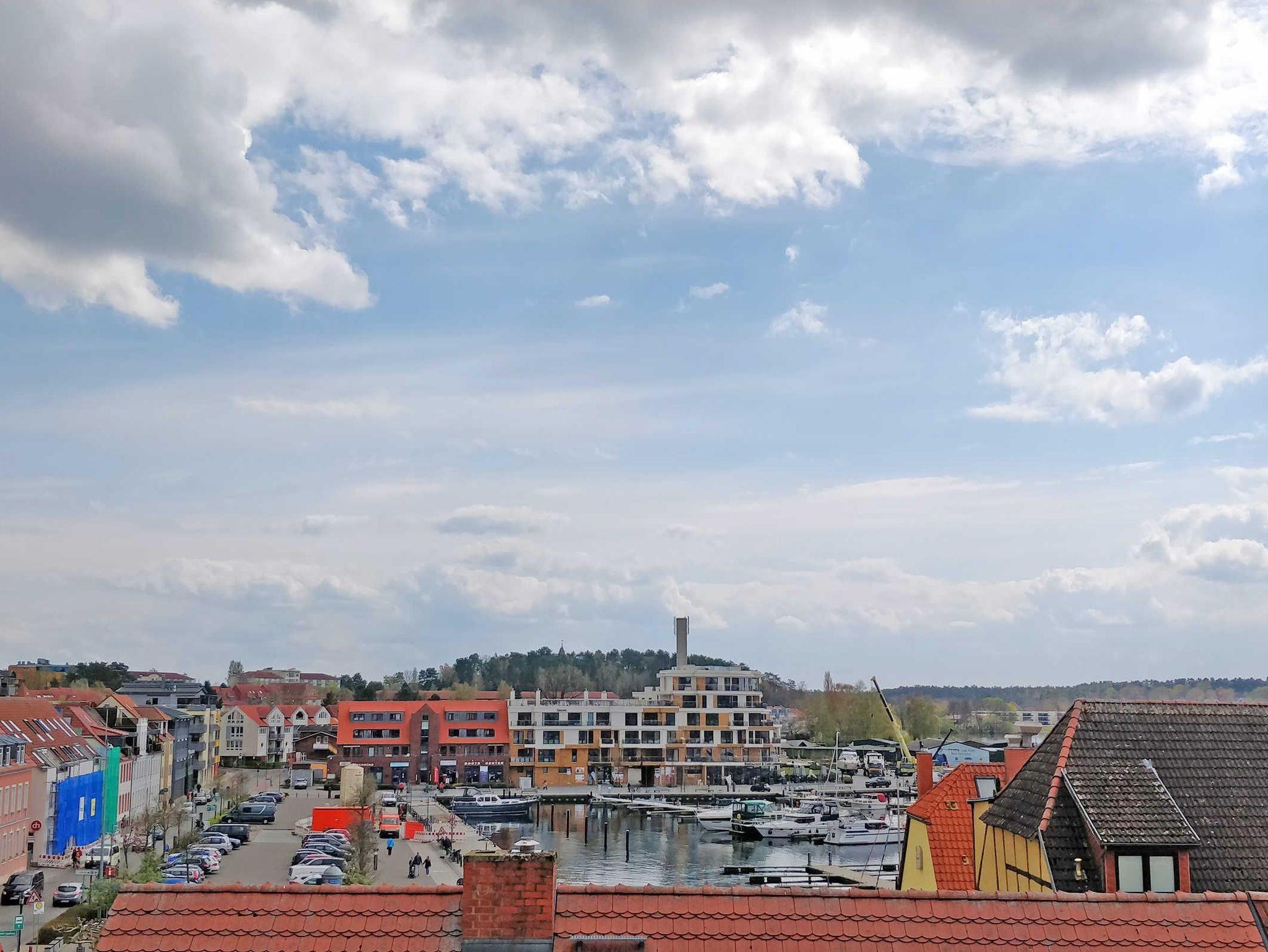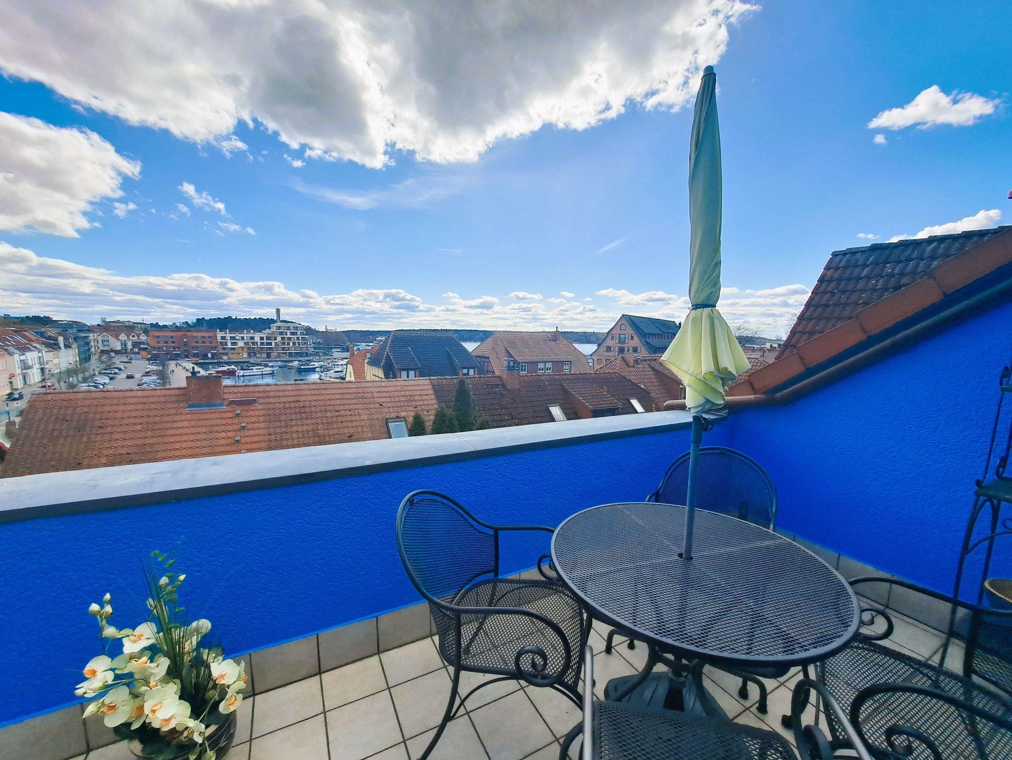 Die Ferienwohnung befindet sich in einer Einbahnstraße im Dachgeschoss/2. Obergeschoss eines Wohn- und Geschäftshauses. Vom großzügigen Südbalkon aus können Sie den Blick über die Dächer der Altstadt auf den Yachthafen und die Binnenmüritz genießen. Der Balkon ist nicht einsehbar von aussen. Der Parkplatz für den PKW befindet sich am Haus, wo auch mitgebrachte Räder angeschlossen werden können (Sackgasse).