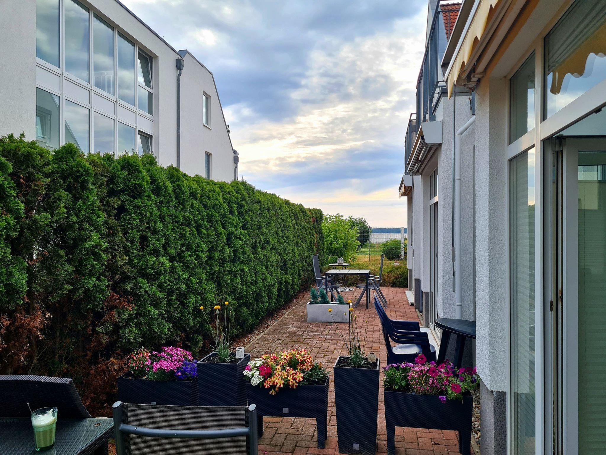 Die Fewo Sehnsucht befindet sich in einer ruhigen Apartmentanlage im Erdgeschoß.