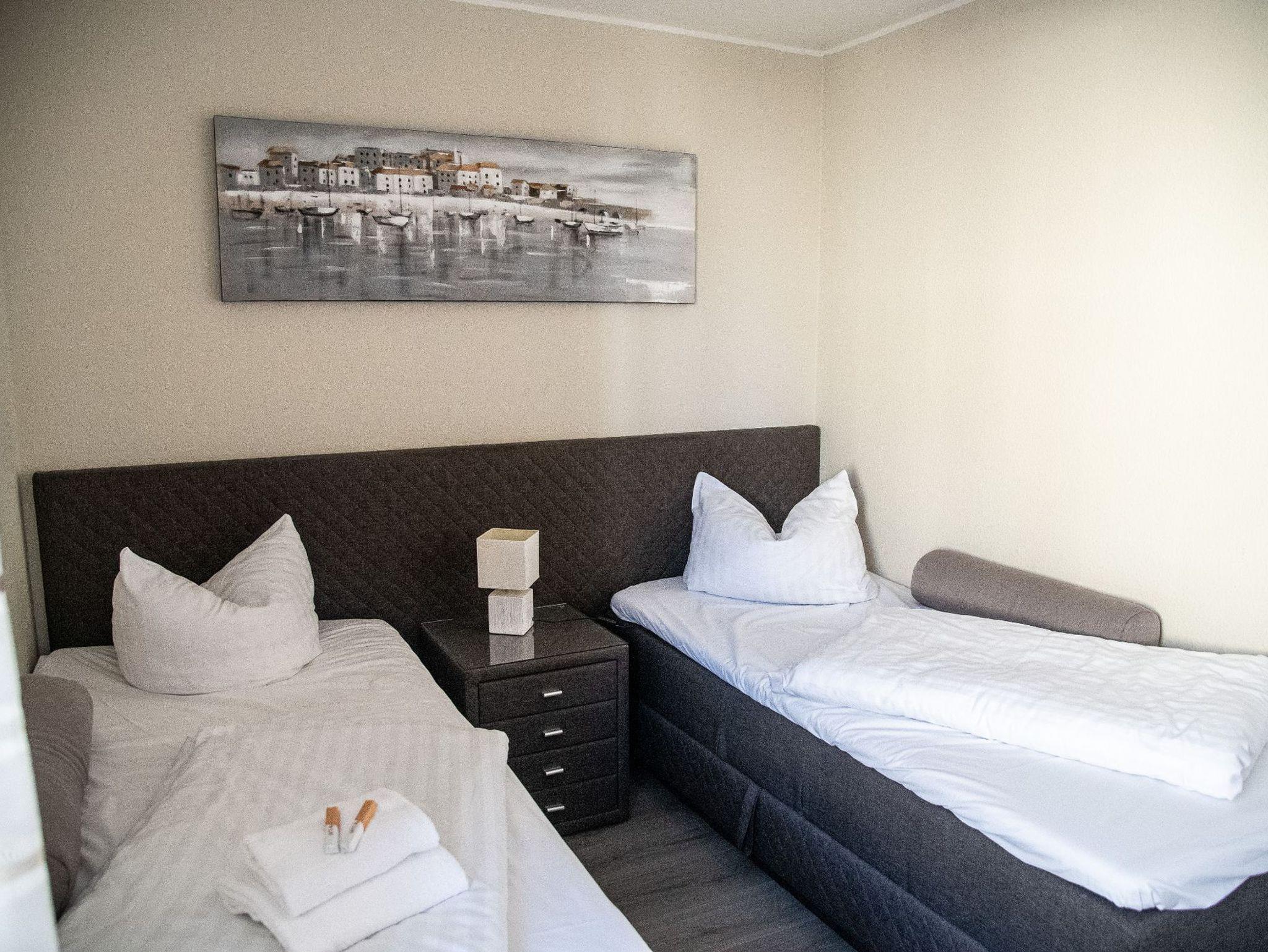 Treten Sie auf die Terrasse in einer parkähnliche Gartenanlage und genießen Sie die Ruhe. Im modern eingerichteten Appartment ist Platz für 2 Erwachsene . Es stehen zwei Einzelbetten[nbsp] im separaten Schlafzimmer für Sie bereit bereit. Für ein Kleinkind kann ein Reisebettchen sowie ein Hochstuhl zur Vefügung gestellt werden.
