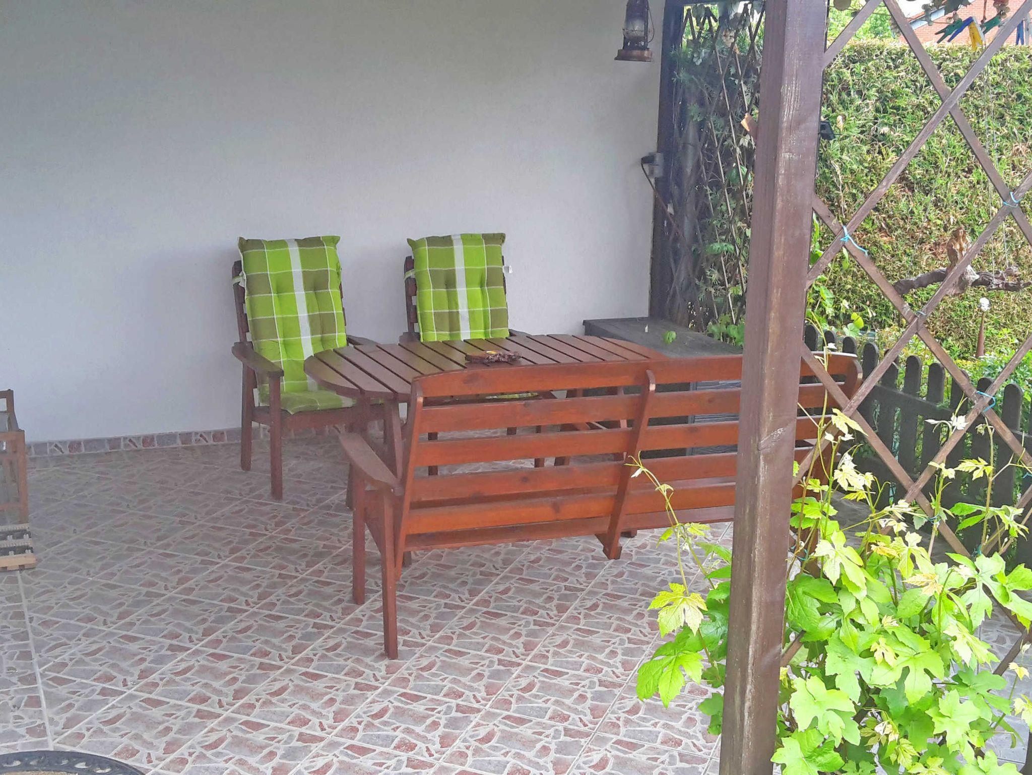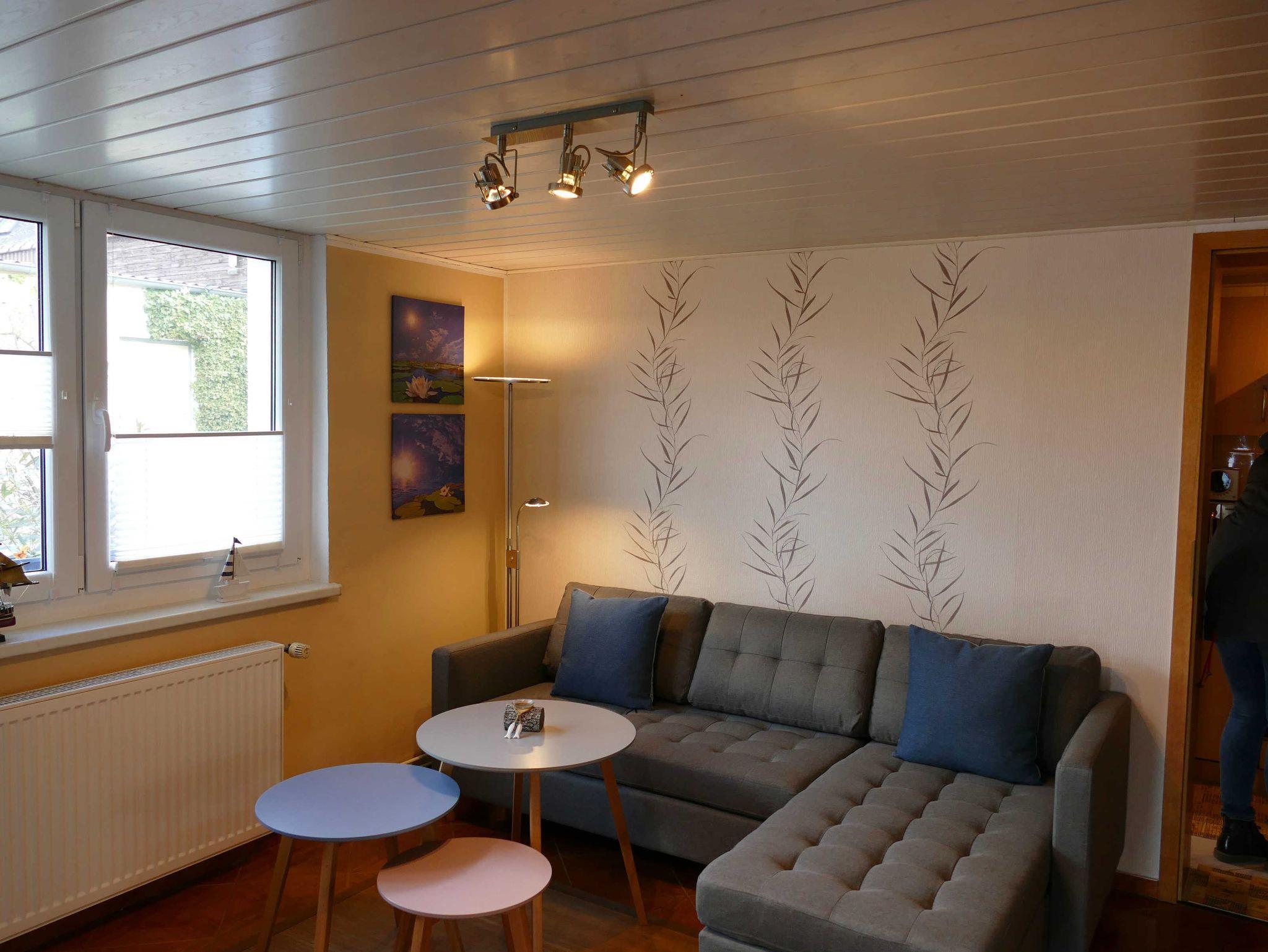Das Ferienhaus über 2 Ebenen ist neuwertig und gemütlich eingerichtet. Im Erdgeschoss befindet sich ein Wohnzimmer und TV, die Einbauküche und ein modernes Bad mit Dusche und WC (Renovierung 2018). Der Schlafraum mit einem Doppel- und einem Einzelbett befindet sich im Obergeschoss=Dachgeschoss. Eine überdachte Terrasse lädt zum Verweilen im Garten ein. Die Couch im Wohnzimmer kann nicht aufgebettet werden.