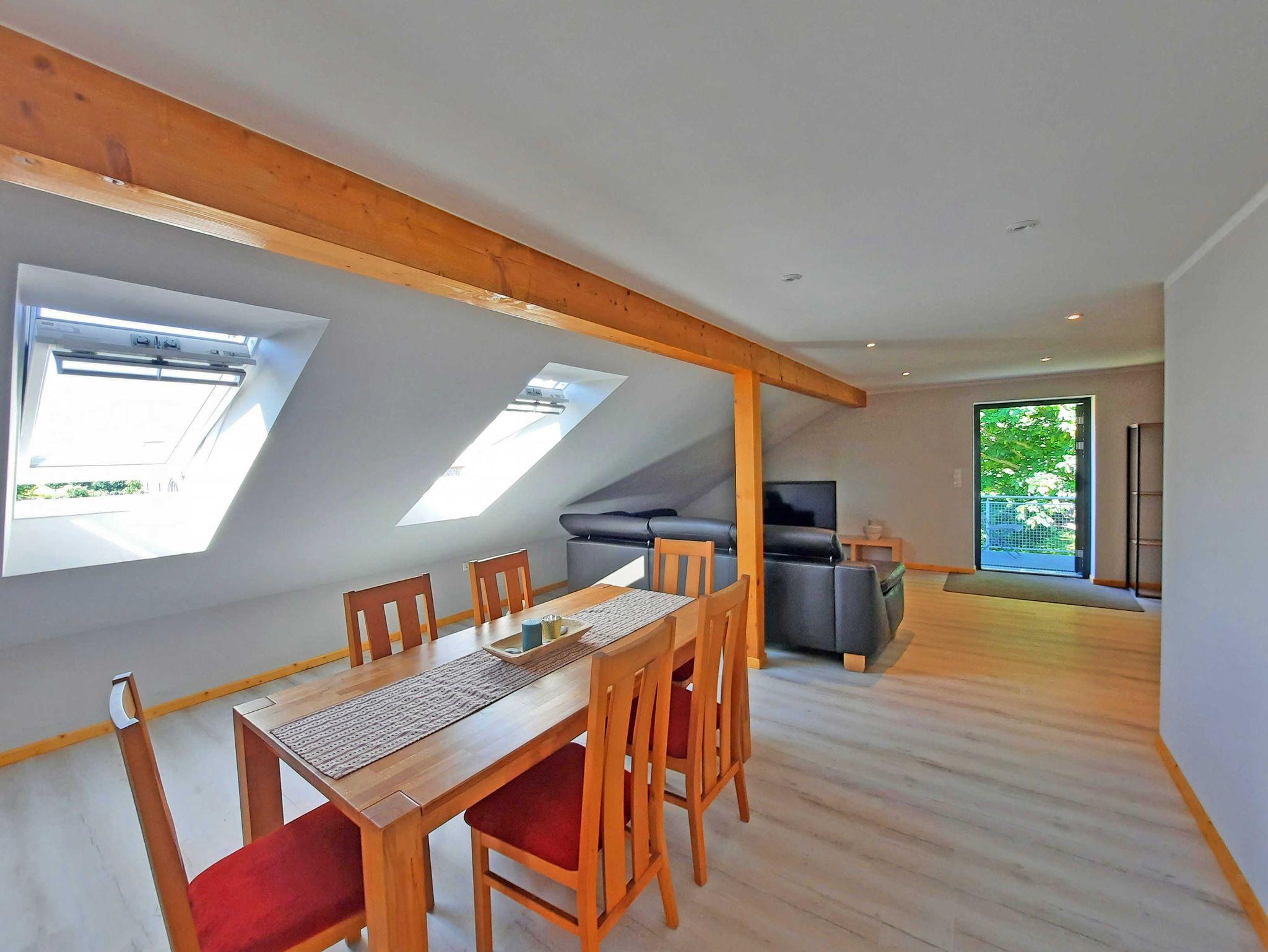 Die Ferienwohnung empfängt sie im hellen freundlichen Stil. Der großzügige Wohn- und Essbereich lädt zum Verweilen ein. Im Wohnbereich befindet sich eine Couchlandschaft (Schlaffunktion möglich) mit FlachTV und im Küchenbereich eine vollständige Einbauküche mit Esstisch. Das Schlafzimmer bietet Ihnen ein Doppelbett