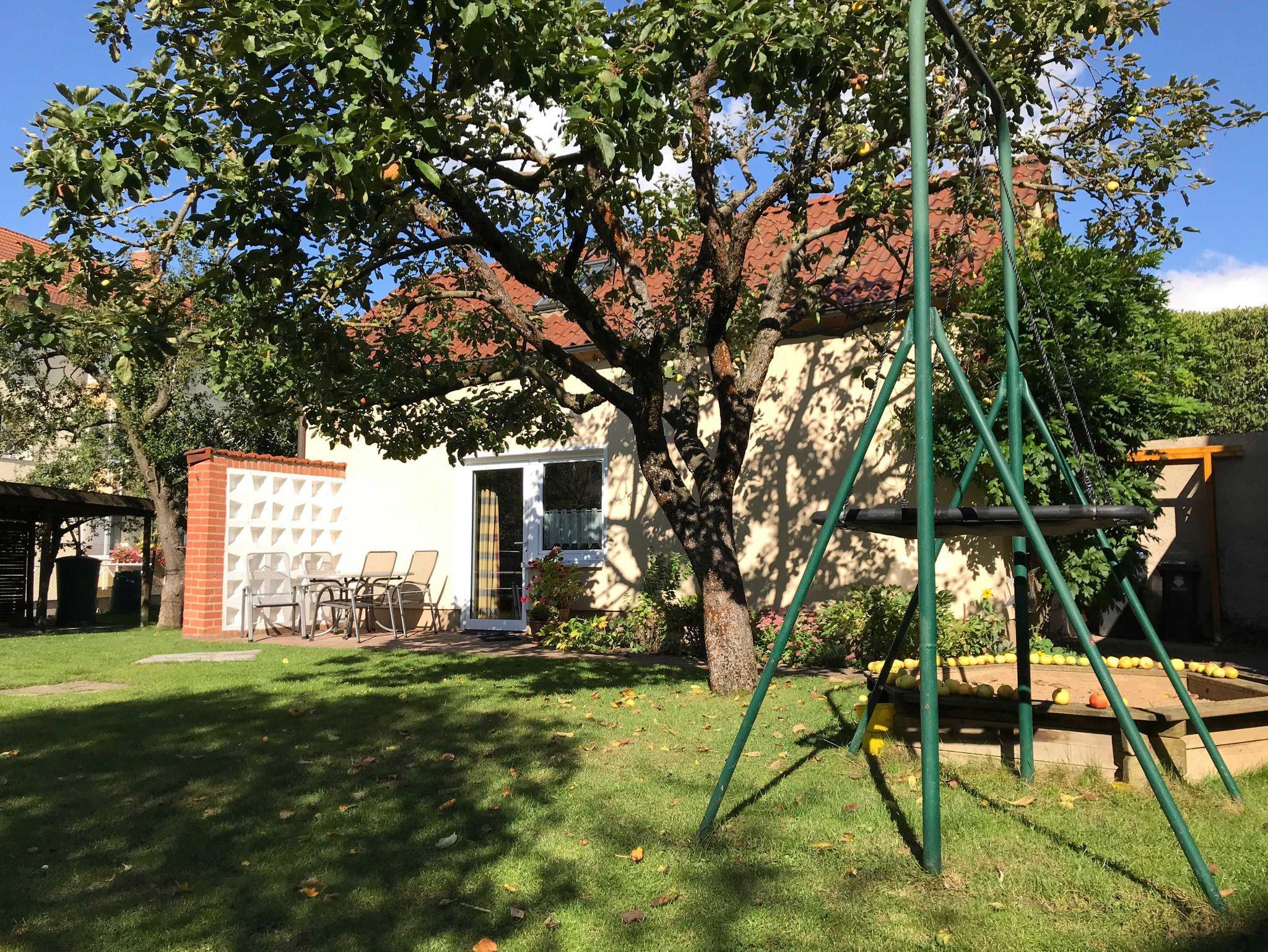 Das Ferienhaus mit Südterrasse und Spielwiese in Waren (Müritz) befindet sich auf dem Grundstück der Vermieter in einer beruhigten Seitenstraße. Von der Terrasse blicken Sie über die Wiese in den Garten. Nach dem Frühstück auf der Terrasse des Hauses können Sie den Kindern beim Spielen, auf der Schaukel oder im Sandkasten zusehen oder selbst die Tischtennisplatte für ein Match nutzen. Ihre Fahrräder finden einen überdachten Stellplatz hinterm Haus, während Ihr Fahrzeug einen Parkplatz vor dem Haupthaus auf dem Grundstück hat.