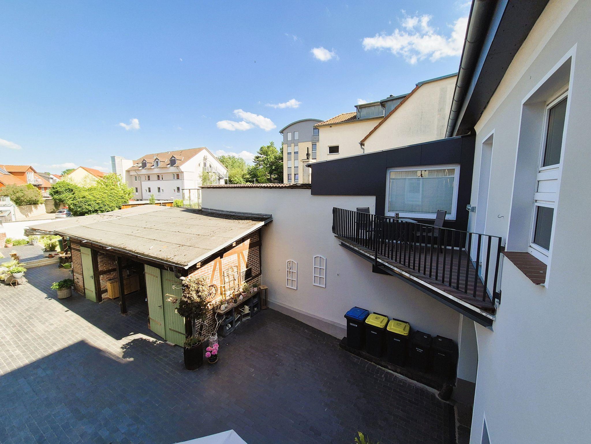 Ruhig und fernab vom Geschehen ist der Balkon, der vom Badezimmer aus zugänglich ist. Genießen Sie hier den Blick über den gepflegten und ruhigen Innenhof.