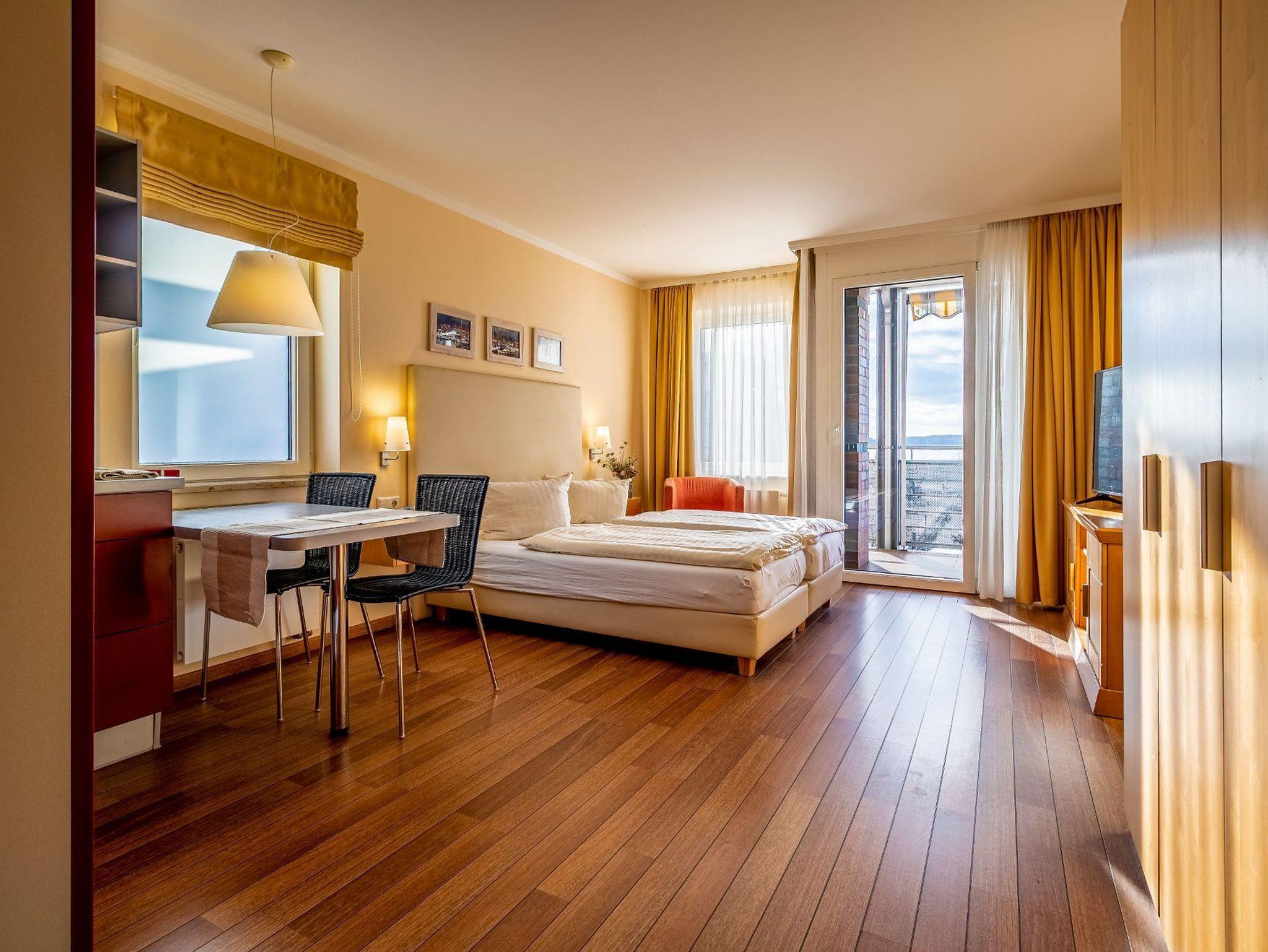Bei der Erstellung und der Einrichtung des Neubaus wurde großer Wert auf die Bedürfnisse unserer Gäste gelegt. So verfügt das Appartement, was sich in der 2. Etage befindet, über einen unverbauten Blick direkt auf den Hafen und von Ihrem Balkon wird so mancher schöner Sonnenuntergang mit der Hafenkulisse und dem weiten Blick über die Müritz in guter Erinnerung bleiben.
