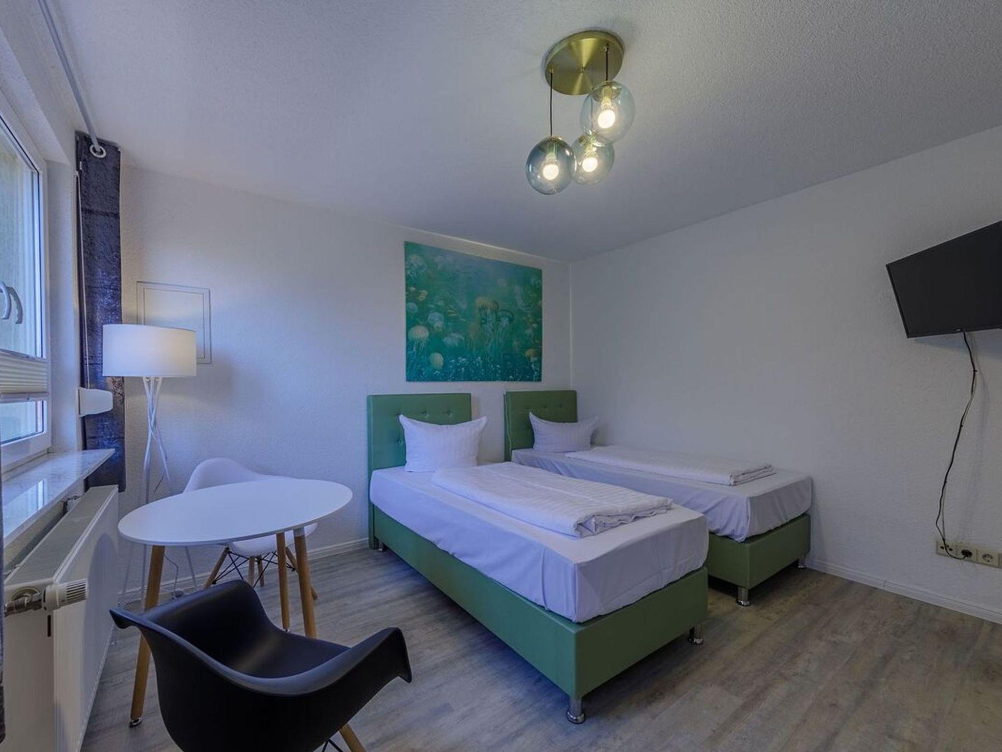 Die Ein-Raum-Ferienwohnung Unterwasserwelt befindet sich im Erdgeschoss und ist eine Nichtraucher- Ferienwohnung für 2 Personen und gehört mit fünf weiteren Wohnungen zum Hafenhaus. Es befindet sich in einer Seitenstraße unmittelbar am Warener Stadt-Hafen. Die Altstadt erreichen Sie zu Fuß gemütlich in ein paar Minuten.