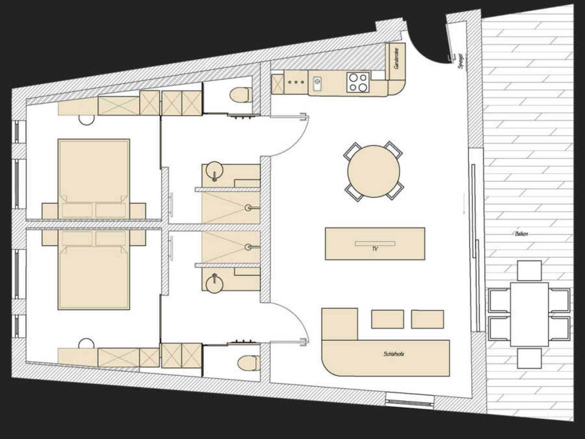 Die Suite Schmied Holstein befindet sich im Obergeschoss des Hauses und verfügt über zwei Schlafbereiche mit jeweils einem Bad en suite sowie einen kombinierten Wohn-/ Essbereich mit offener Küche. Eine Aufbettung für die 5. Person erfolgt im Wohnbereich auf der Couch. Weitere Ausstattungen: Balkon: 22 qm (teilweise Müritzblick Südseite), Nichtraucher, Fußbodenheizung, Sat-TV und Radio, W-LAN, Schreibtisch, komfortables Sofa, modernes Sideboard und gemütlichen Esstisch, Terrasse mit Blick auf den Innenhof, vollausgestattete moderne Küchenzeile mit Backofen, Mikrowelle, Kaffeemaschine, Wasserkocher, Toaster, Kühlschrank mit Eisfach, Cerankochfeld, Geschirrspüler sowie ausreichend Geschirr, Schlafzimmer mit großen Betten und komfortablen Matratzen, ein Tresor für Wertsachen, großzügig geschnittene Bäder mit ebenerdiger Dusche, Haartrockner, Saunatücher und Bademäntel stehen für Hausgäste zur Verfügung.