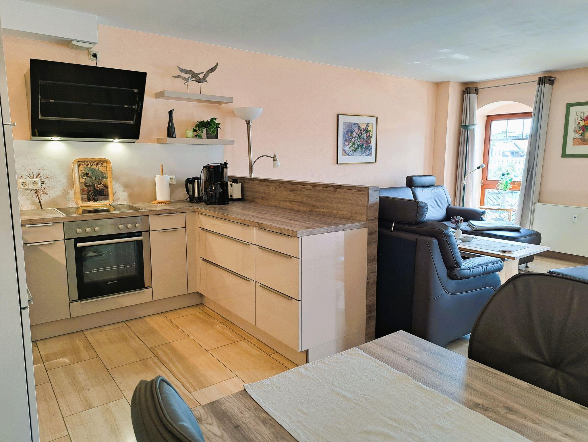 Die großzügige Ferienwohnung bietet Ihnen ein ca. 30 qm großes Wohnzimmer mit integrierter Einbauküche, Esstisch, Couchlandschaft, FlachTV und Zugang zum Balkon mit Blick über Yachthafen, Flaniermeile und Binnenmüritz. Das Schlafzimmer, ebenfalls mit Müritzblick, besitzt ein Doppelbett, großem Kleiderschrank und 2. TV. Im neu sanierten Bad (2016) befindet sich eine Dusche mit flachem Einstieg, Waschtisch und WC. Vom Flur mit Garderobe und Schuhablage sind alle Räume begehbar. Die Wohnung ist mit Lift erreichbar. Ihnen steht kostenfreies WLAN zur Verfügung.