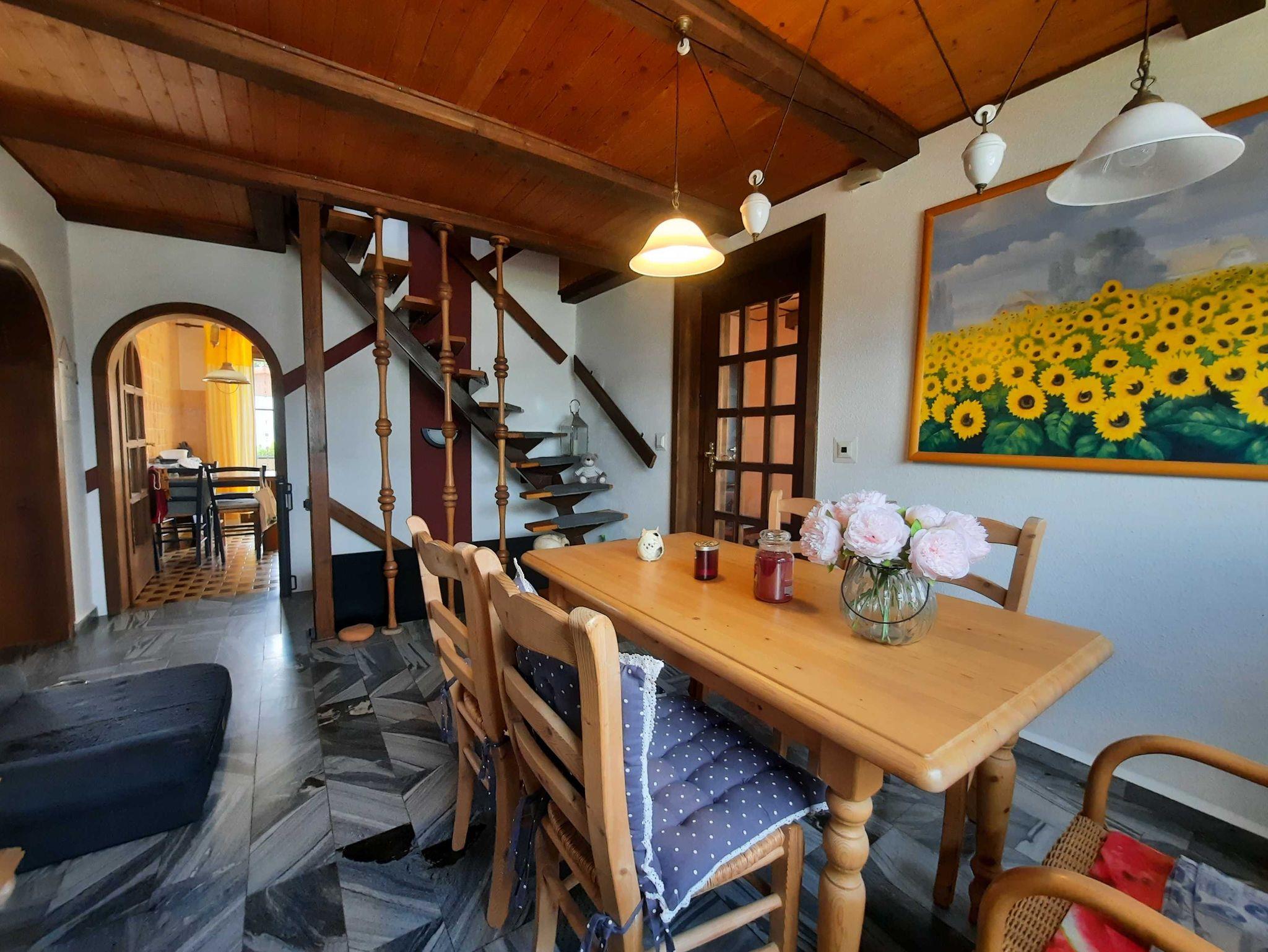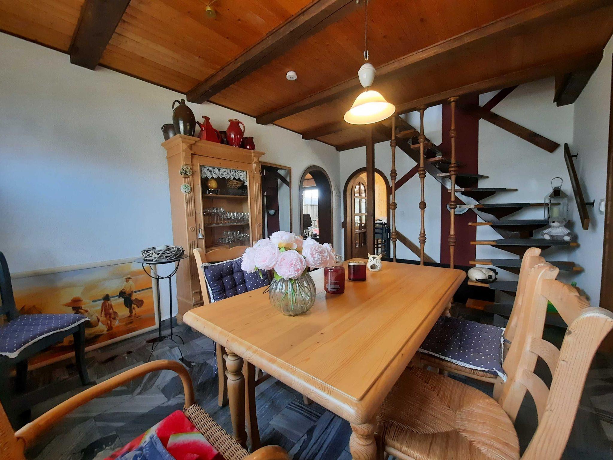 Das Ferienzimmer ist im Einfamilienhaus des Vermieters im 1. Obergeschoss mit Dachschrägen. Fahrräder können auf dem Grundstück abgestellt werden. Zur Familie gehört ein kleiner Hund. Nach Absprache kann im Erdgeschoss ein kleiner Essbereich und die Küche des Hauses mitgenutzt werden. Ein Frühstücksservice wird nicht angeboten.