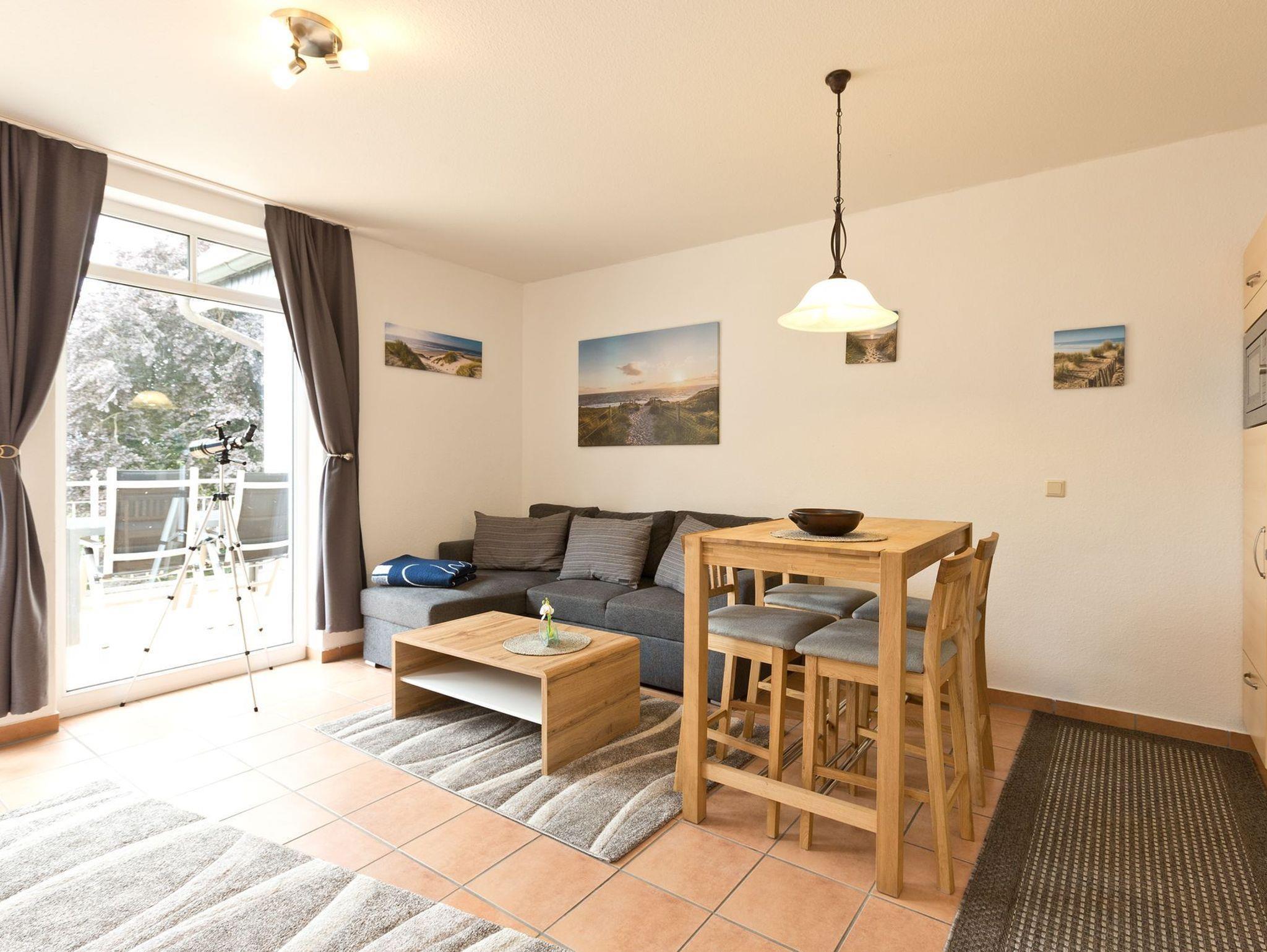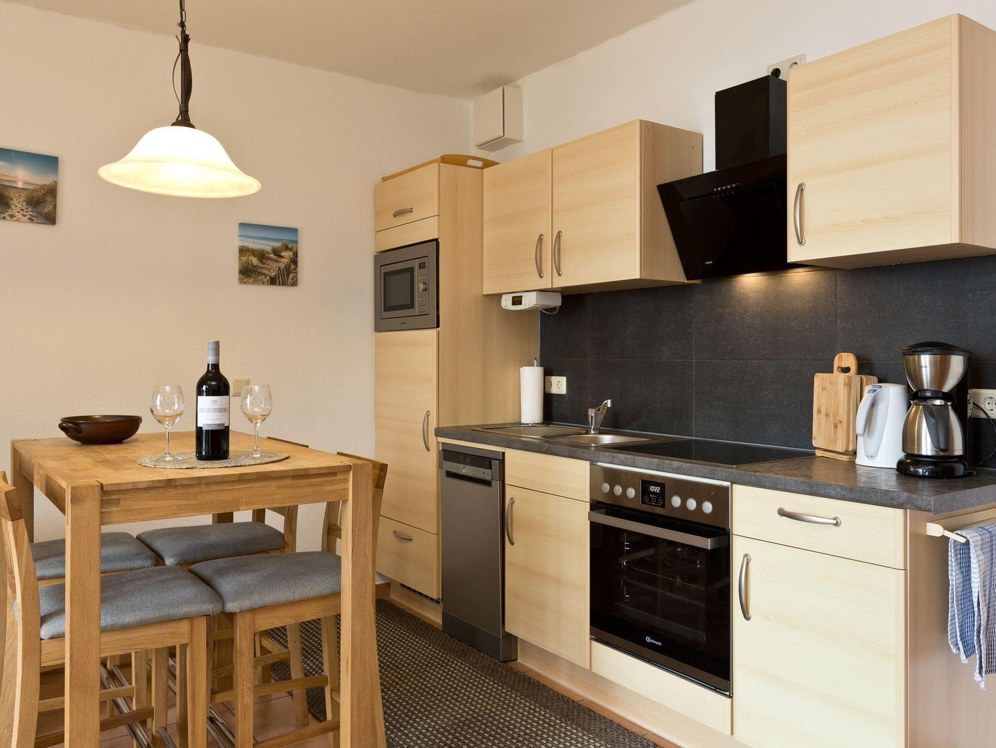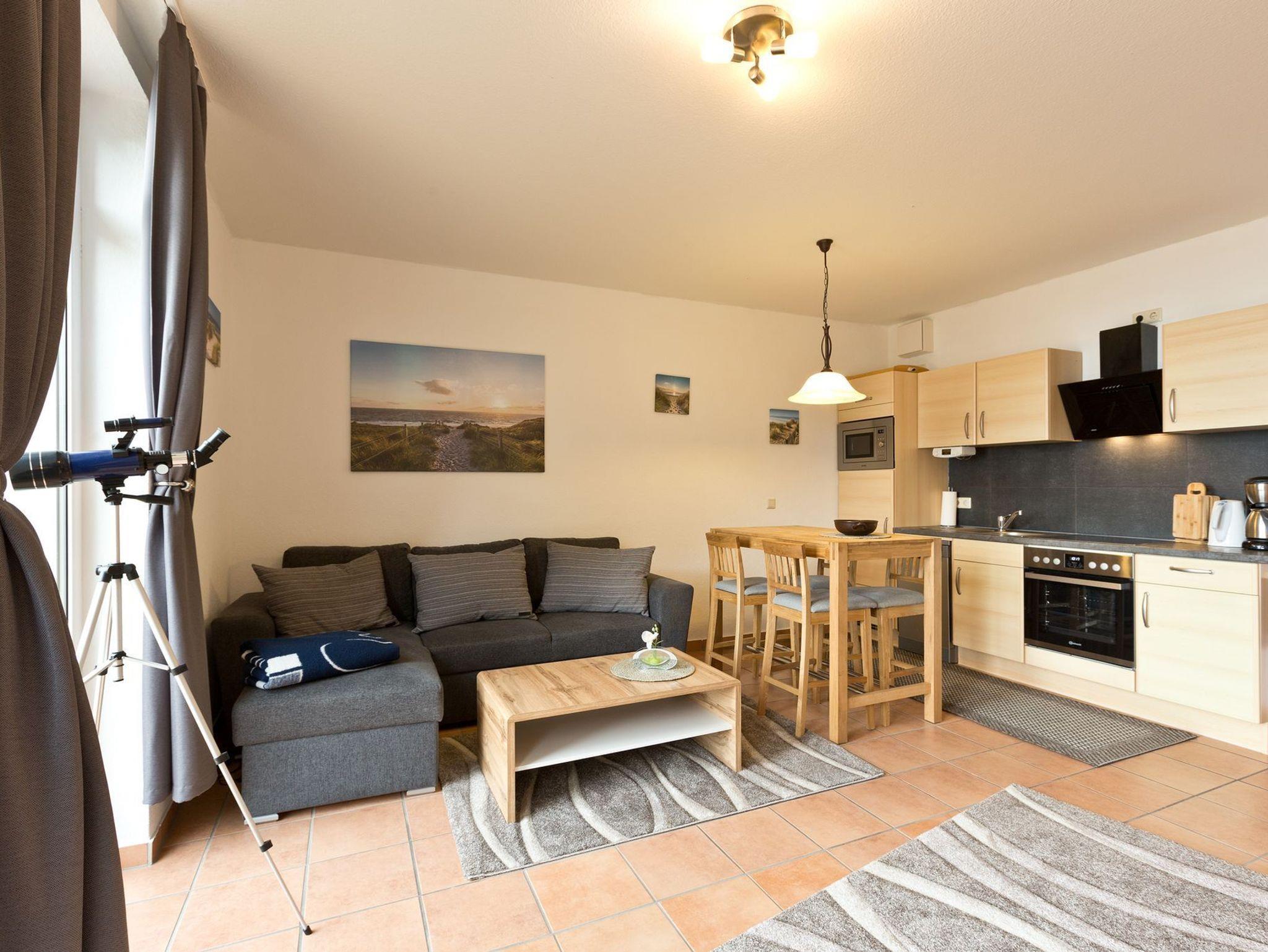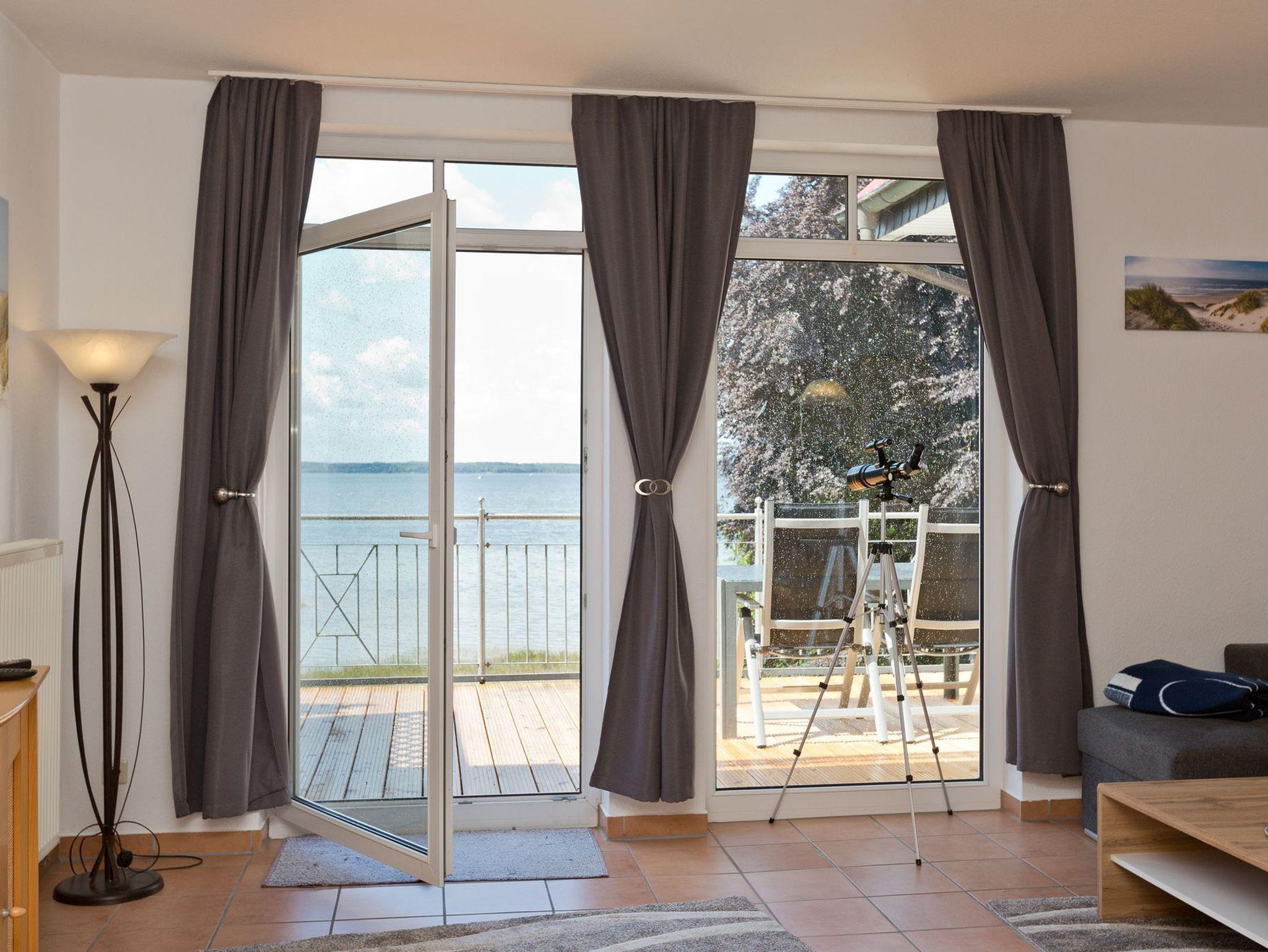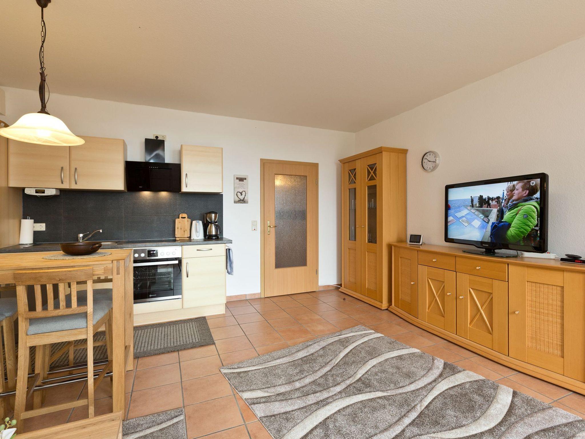 In der schönen in der 2. Etage gelegenen, 71 m² großen Ferienwohnung (3.3) erwartet Sie ein großzügiger Wohn- und Essbereich mit TV, Radio, tollem Seeblick und Zugang zur möblierten, sonnigen Balkon-Terrasse. In diesem Bereich befindet sich auch die vollständig ausgestattete Küche mit Backofen, Plattenherd, Mikrowelle, Wasserkocher und Kaffeemaschine.