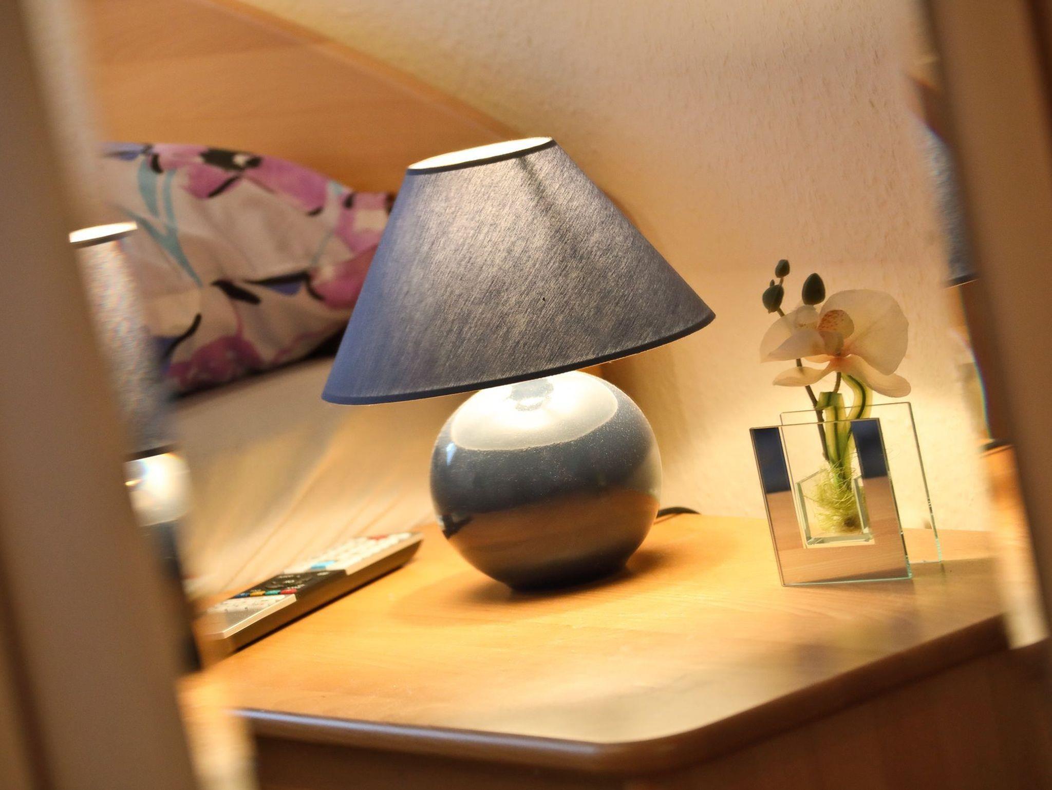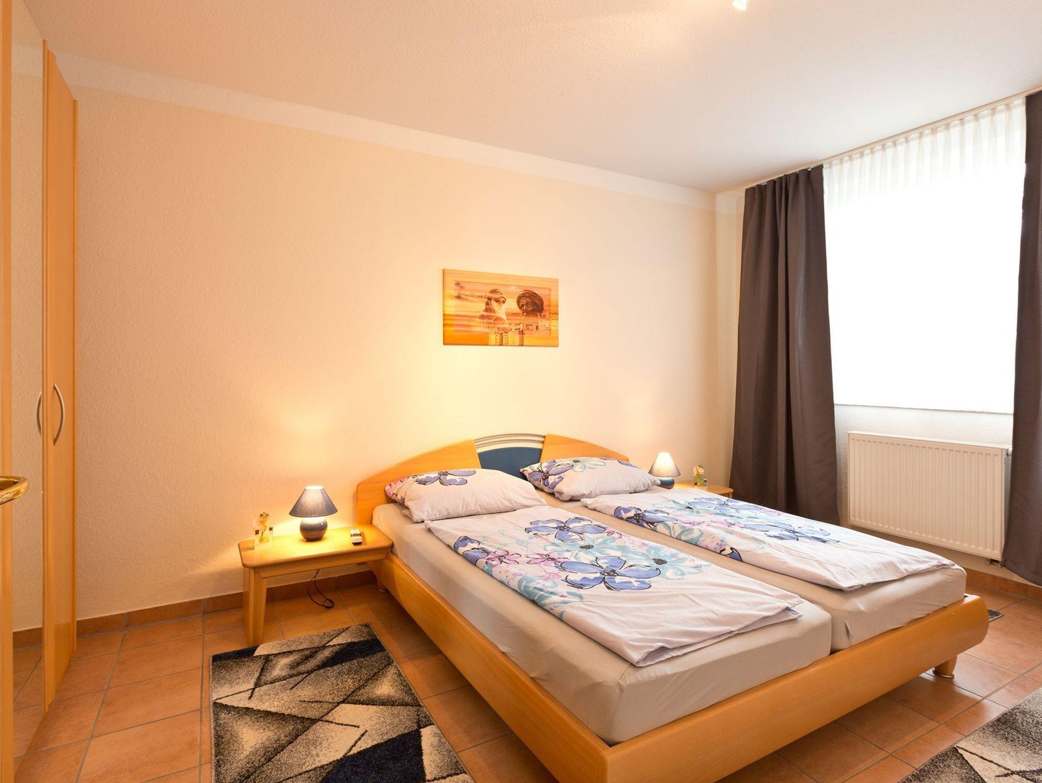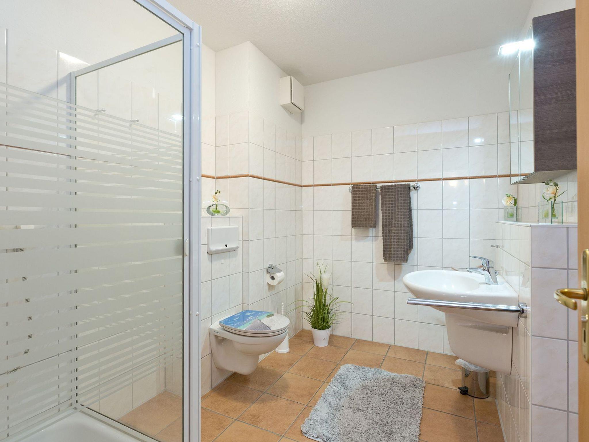 Zur weiteren Ausstattung gehören noch ein Schlafzimmer mit Doppelbett sowie ein Bad mit Dusche und WC.