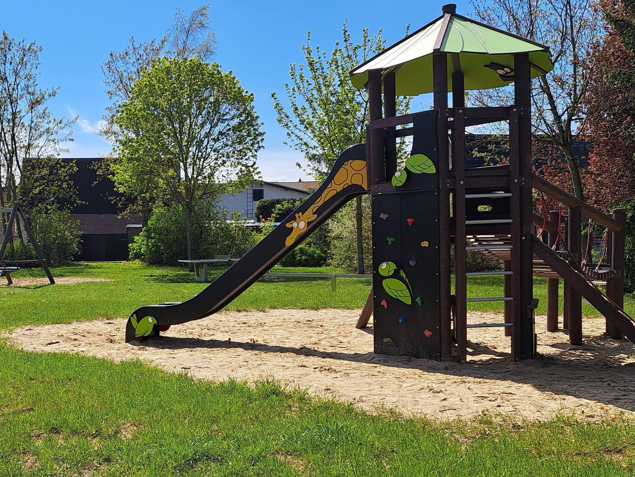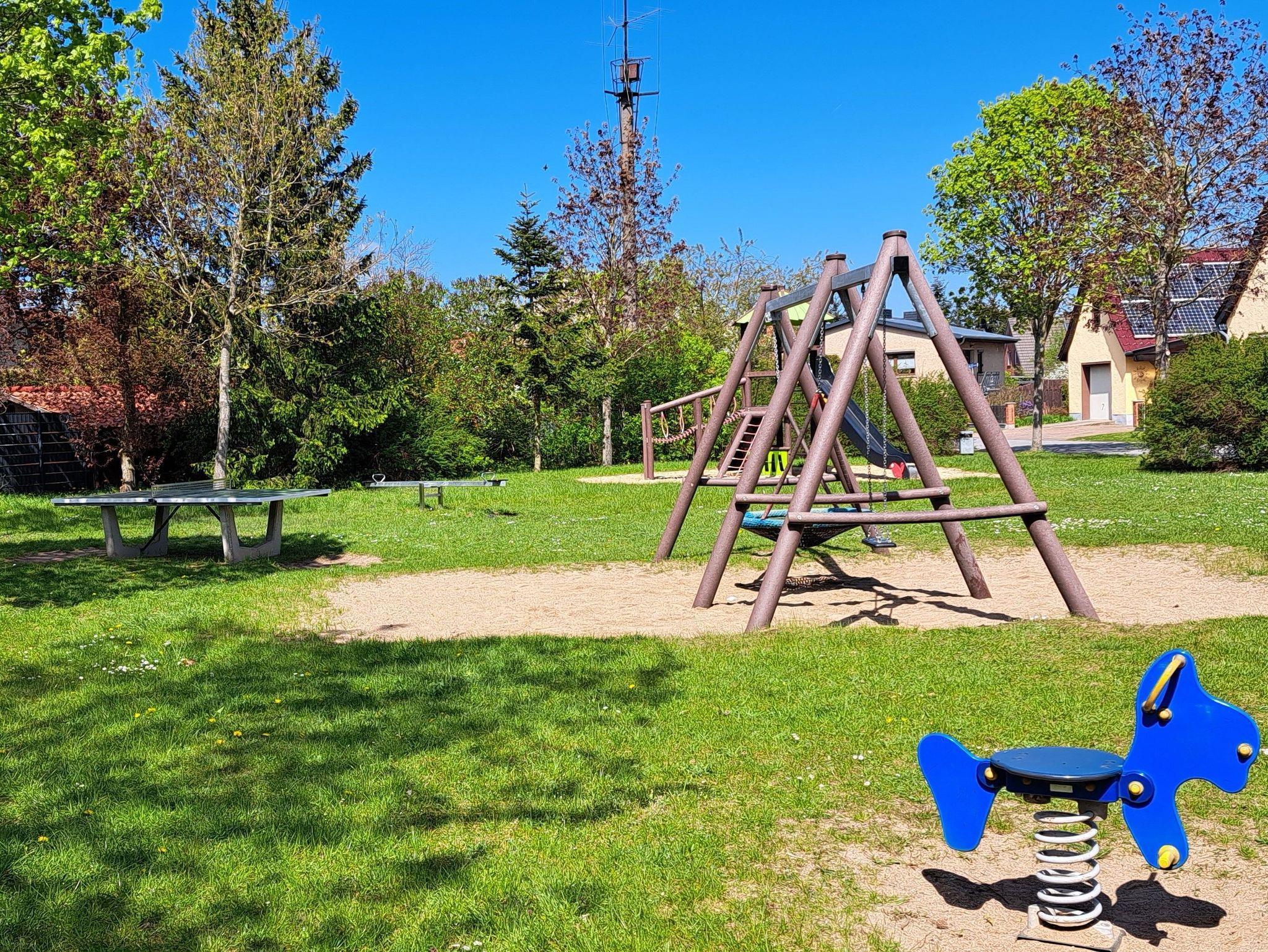 Für die Kinder befindet sich gegenüber von unserem Haus ein Spielplatz.
