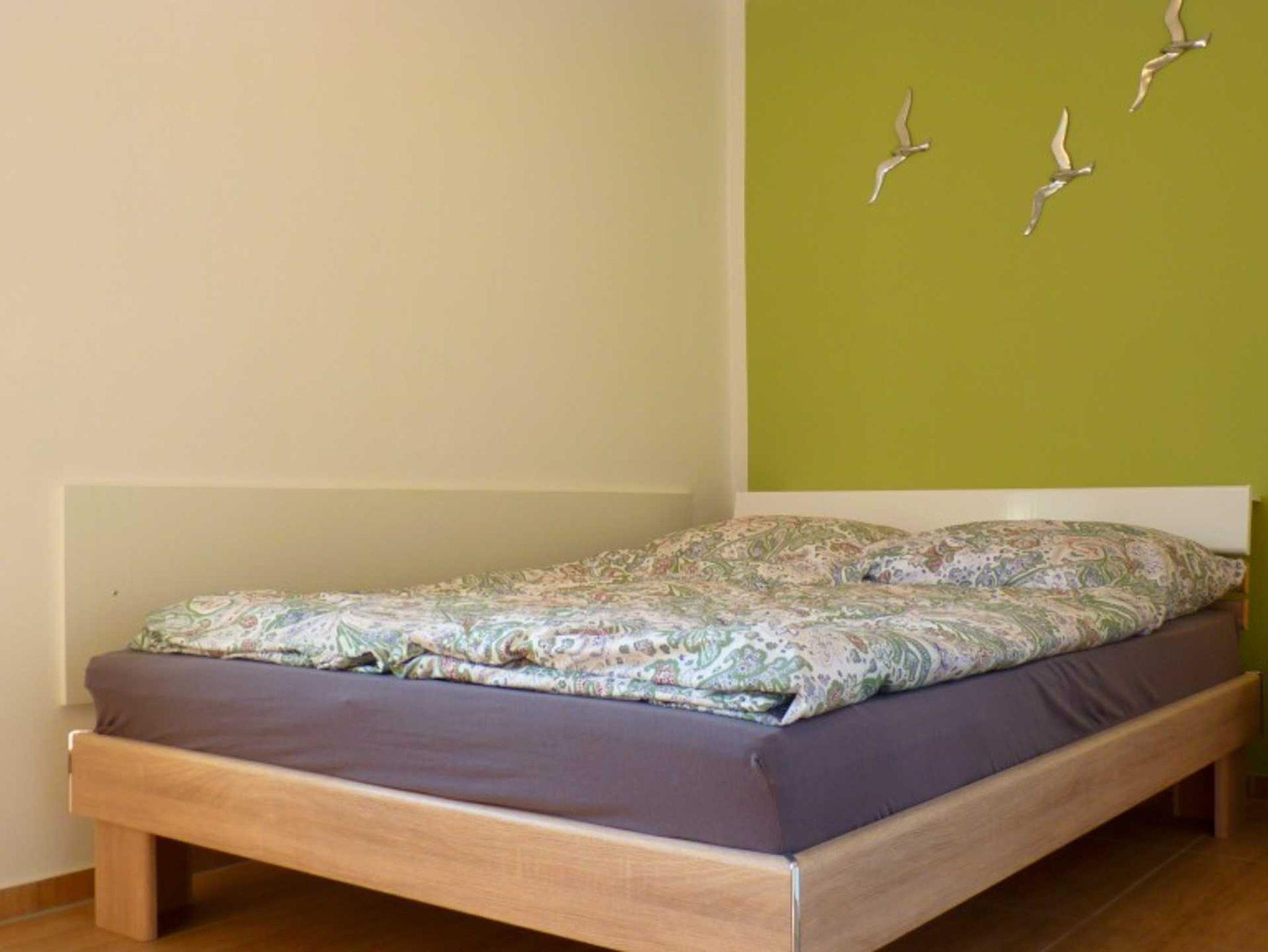 Das Ferienhaus bietet Ihnen ein Wohnzimmer mit Couch und FlachTV, sowie einer integrierten Einbauküche mit Esstisch. Das Schlafzimmer verfügt über eine Doppelbett (1,60 m breit), einem Kleiderschrank und Ablagemöglichkeit. Das Bett steht mit einer Seite direkt an der Wand. Das Badezimmer ist ausgestattet mit großer ebenerdigen Dusche, Waschtisch und WC. Die Inneneinrichtung ist in jedem Zimmer neu und liebevoll von der Vermieterin arrangiert worden.