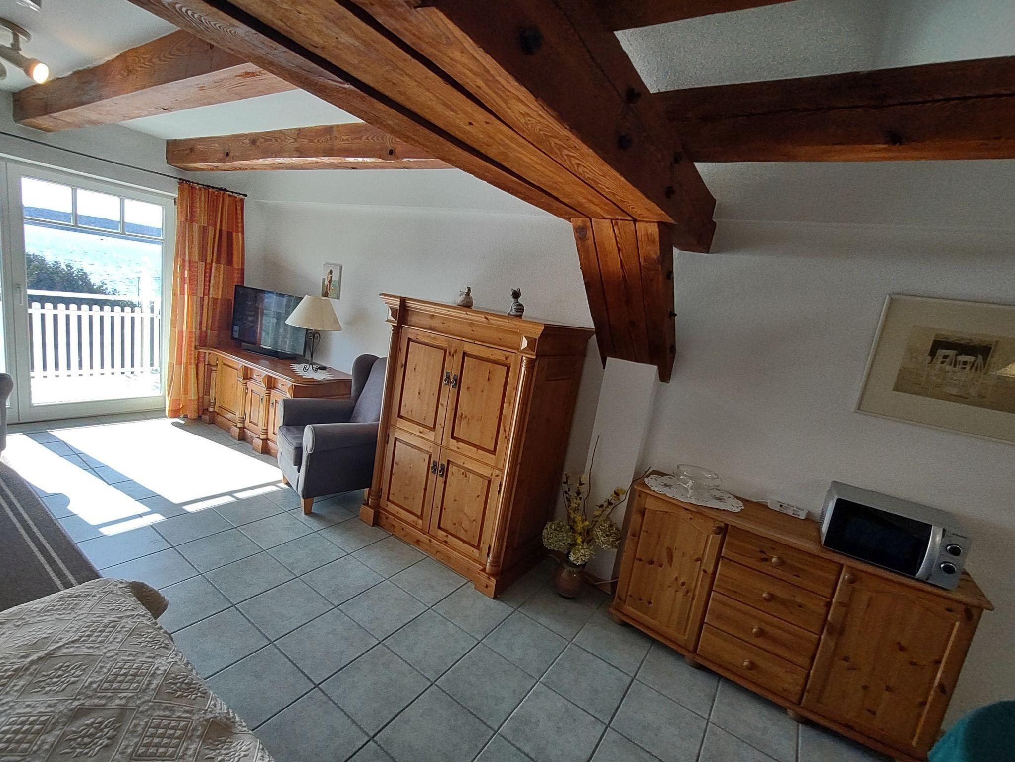 Von dem möblierten Balkon haben Sie einen wunderschönen Blick auf die Müritz. Die Ferienwohnung befindet sich in einer der besten Lagen von Waren. Die Holzmöbel harmonieren mit den schönen, alten Deckenbalken. Sie verfügt über ein Vollbad mit Dusche sowie einen großzügigen Wohnbereich mit Doppelbett, Sofa, Sessel, Kabel -TV, Radio, Esstisch und komplett ausgestatteter Küchenzeile.