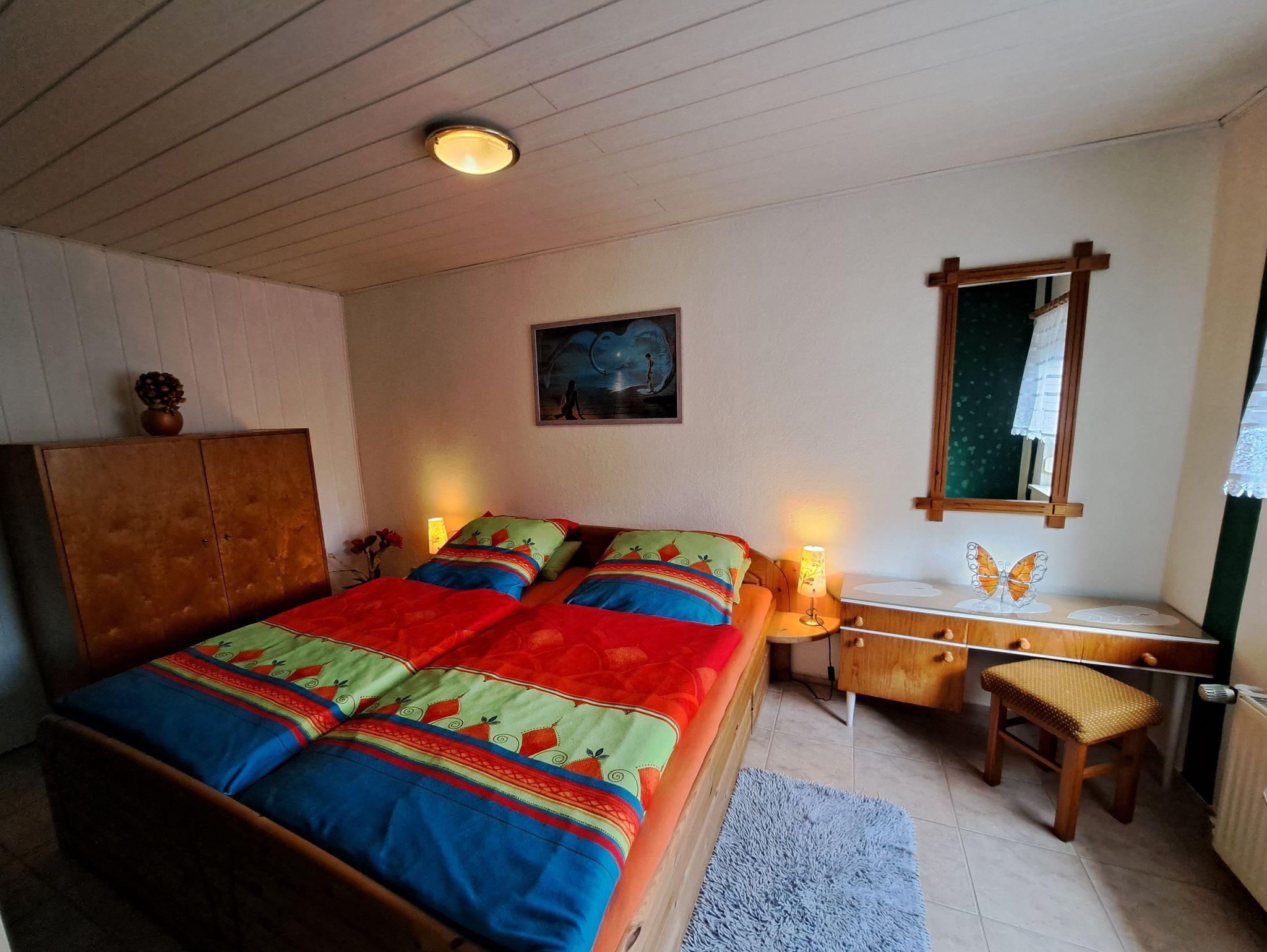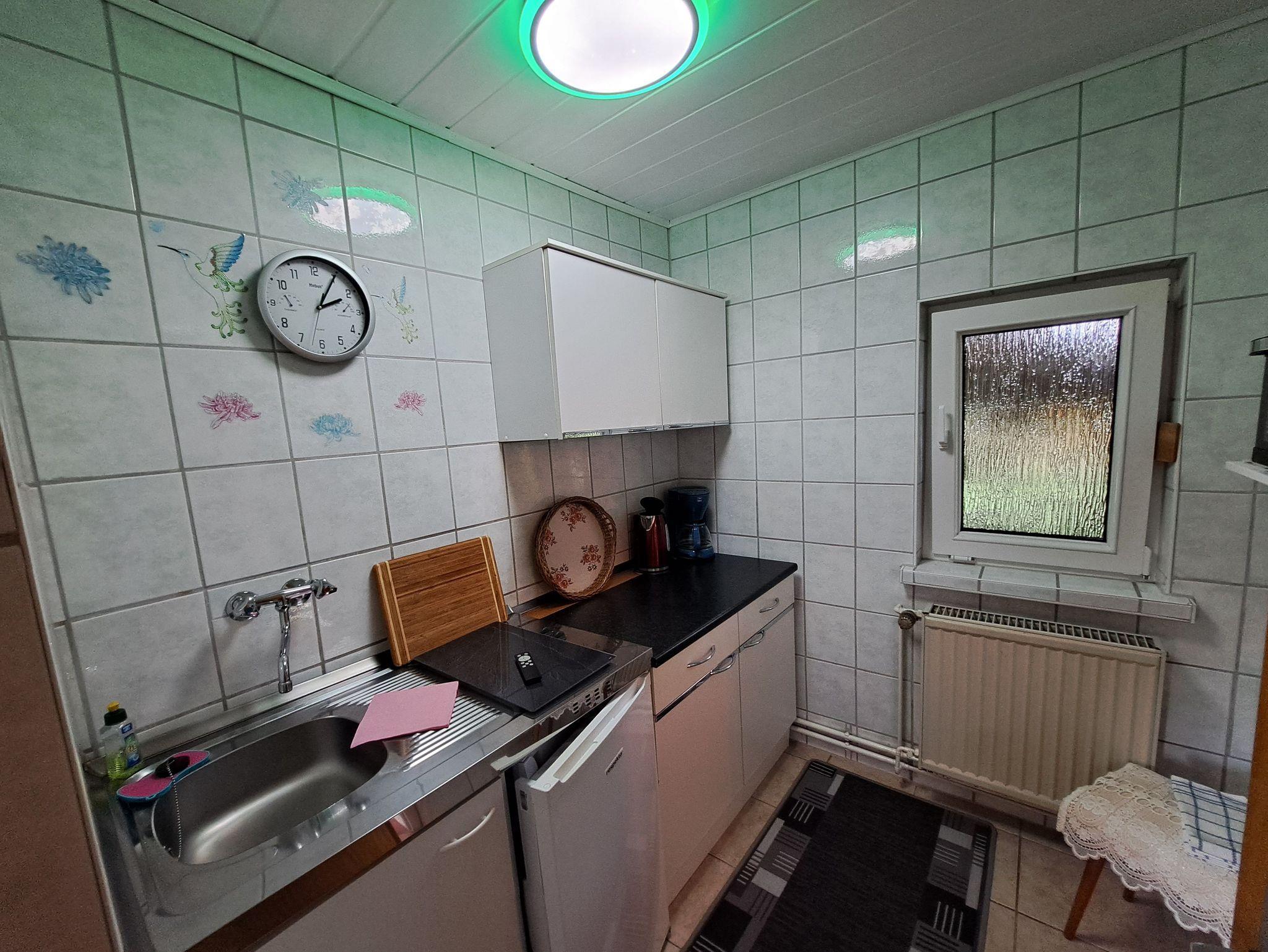 Das Ferienhaus für 2 Erwachsene bietet Ihnen 1 Wohnzimmer mit offener Pantryküche, Minibackofen, Kühlschrank mit Gefriermöglichkeit, Wasserkocher und Toaster. Im Wohnbereich befindet sich eine Couch, Schrankwand und FlachTV. Das Schlafzimmer verfügt über ein Doppelbett und Kleiderschrank. Ein Badezimmer empfängt Sie mit Dusche, Waschtisch und WC. Das Ferienhaus erstreckt über eine Ebene im Erdgeschoss, hat aber Zutritt über eine kleine Treppe.