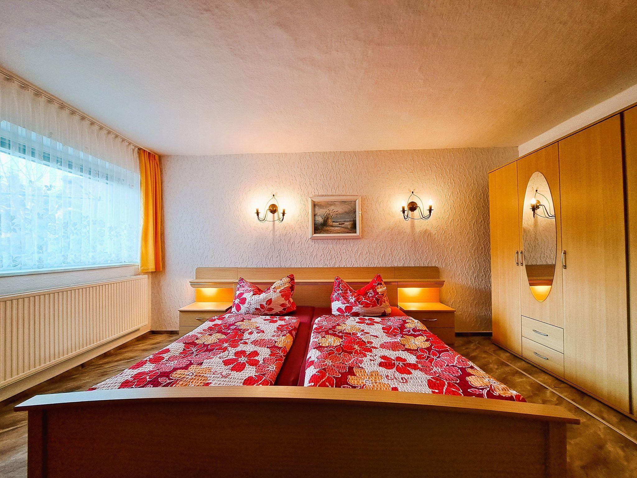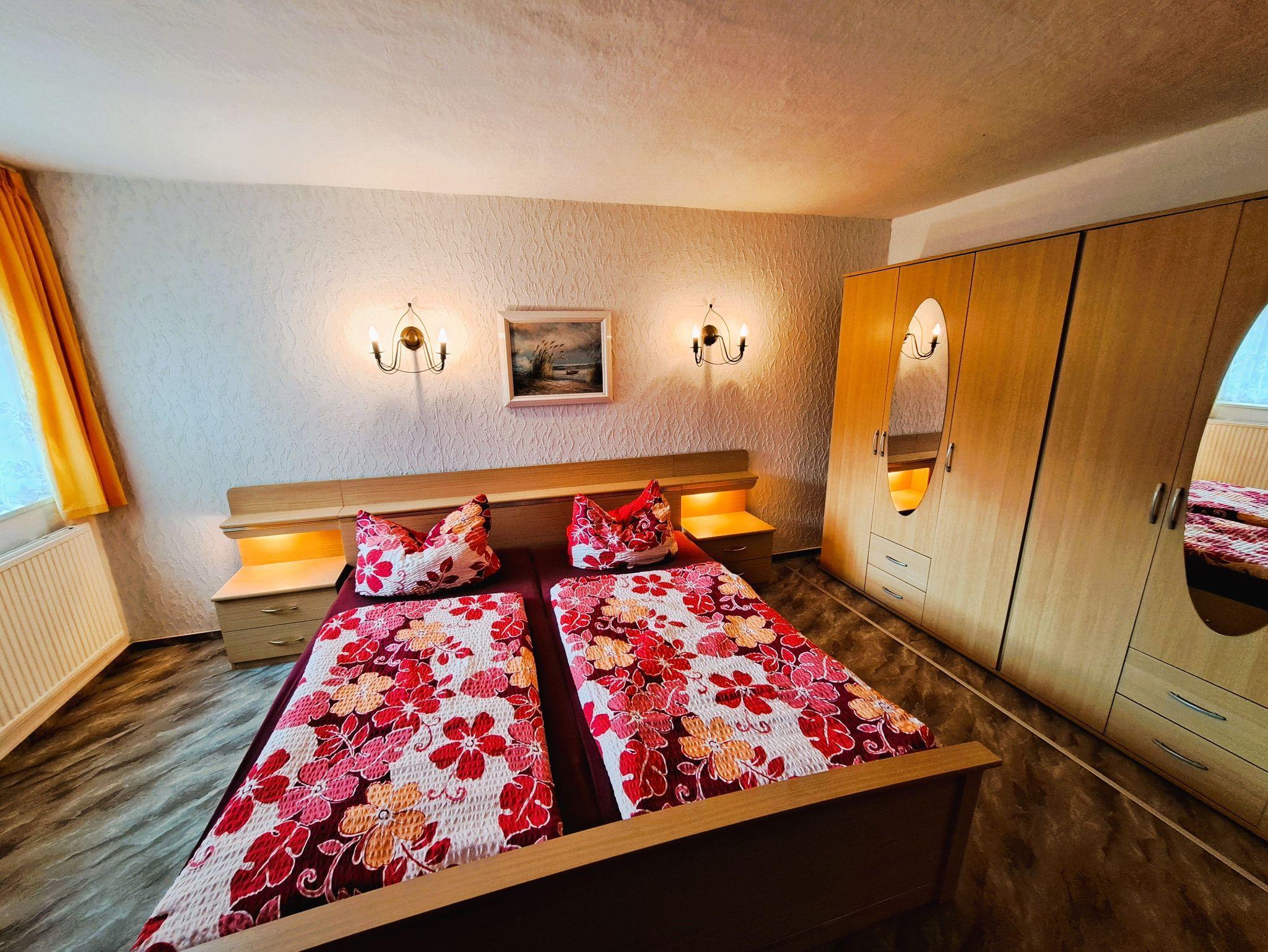 Das Schlafzimmer besticht durch ein großes Doppelbett, eine praktische Kleiderablage und einen großzügigen Kleiderschrank ? der perfekte Ort zum Erholen und Wohlfühlen.