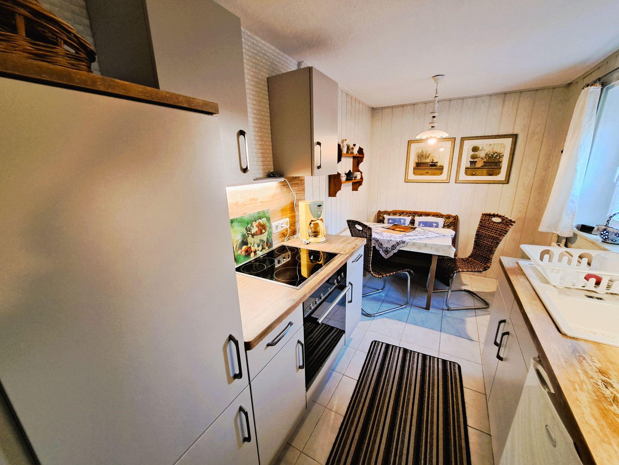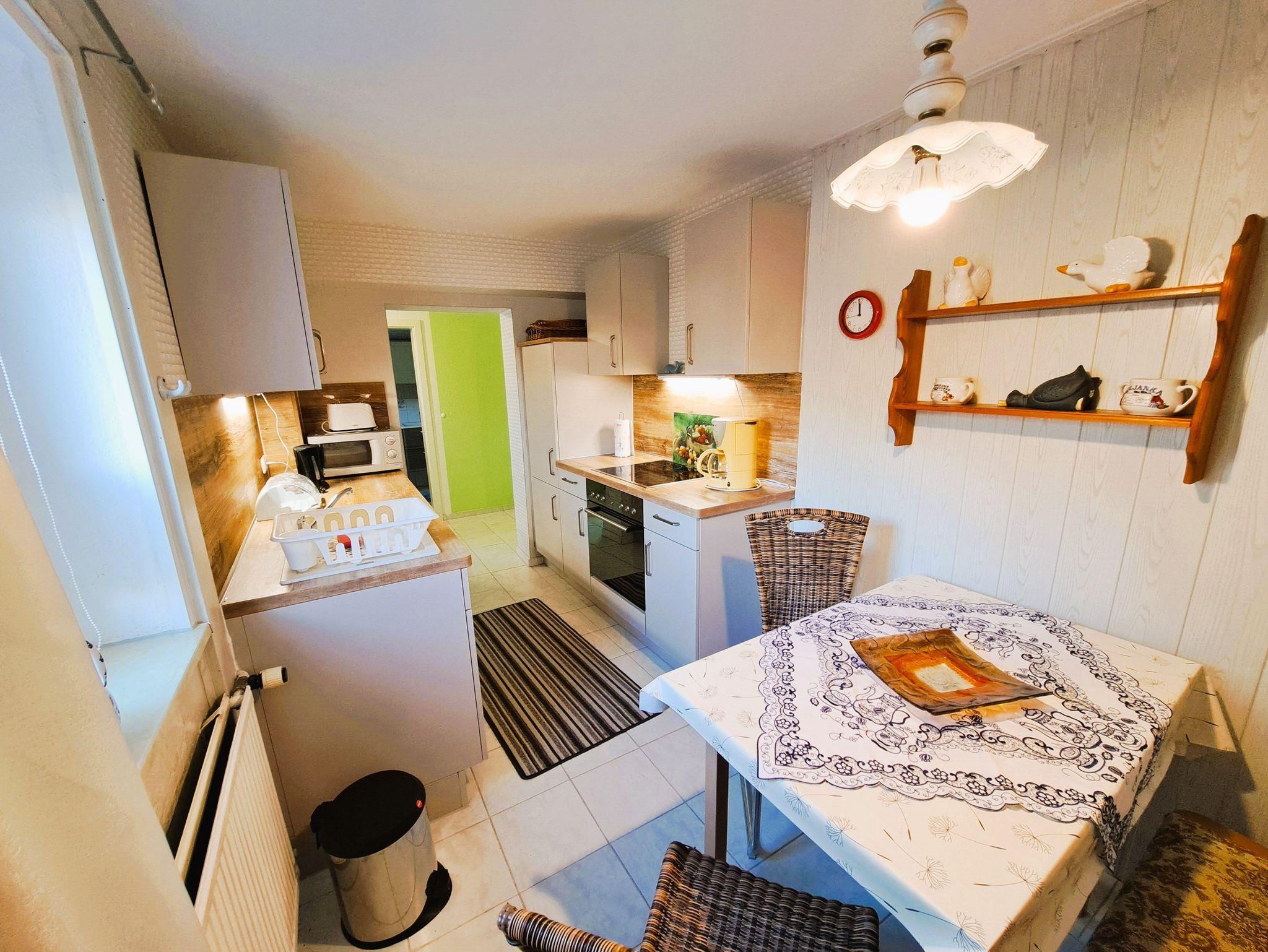 Die Ferienwohnung im Halbsouterrain heißt Sie mit einem großzügigen Flurbereich willkommen, der über eine praktische Garderobe und Schuhablage verfügt. Die Küche ist gut ausgestattet und lässt keine Wünsche offen ? inklusive Esstisch für gemeinsame Mahlzeiten.